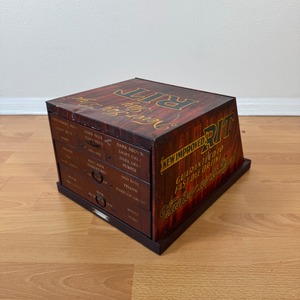 アメリカの老舗染料ブランド「RIT(リット)」による、染料販売店向けのディスプレイボックスです。推定1920~30年頃のものと思われます。店舗のカウンターや棚に設置され、各色の染料パッケージを収納・陳列するために使用されていた什器で、ビンテージ什器の中でも非常に人気の高いアイテムのひとつです。