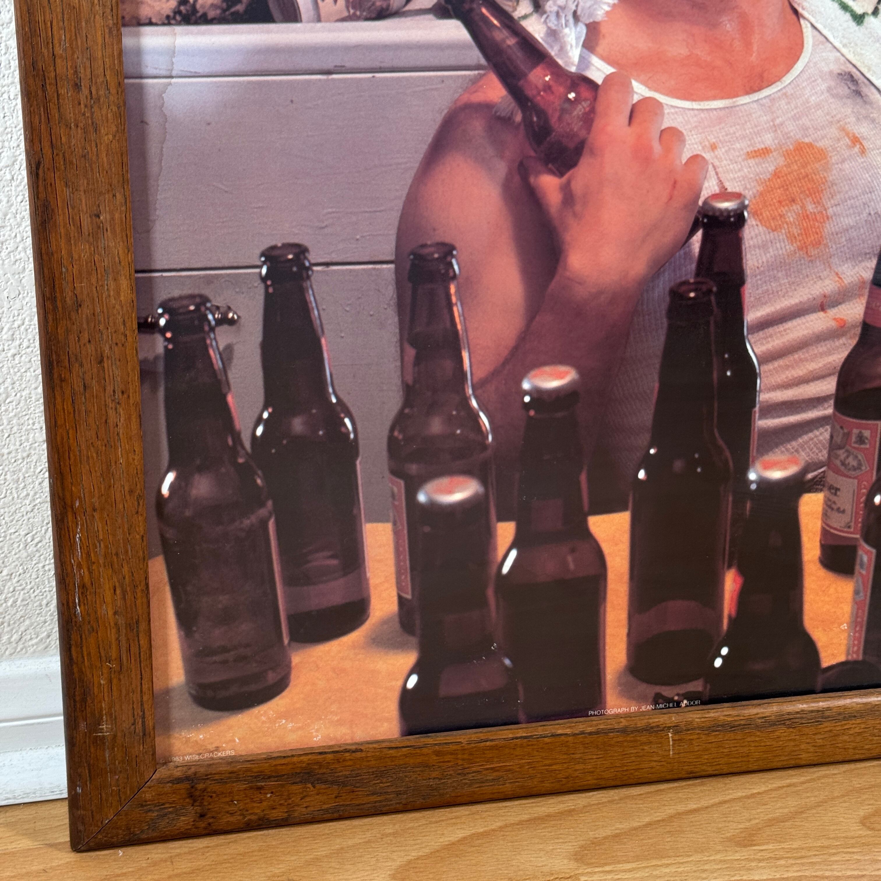 アメリカンジョーク全開のこの一枚は、1980〜90年代に流通していたジョーク系ポスターの中でも、特に存在感のある逸品。散らかったキッチン、汚れたタンクトップ、そしてどこか憎めない笑顔。見る人のツッコミ心をくすぐること間違いなし!