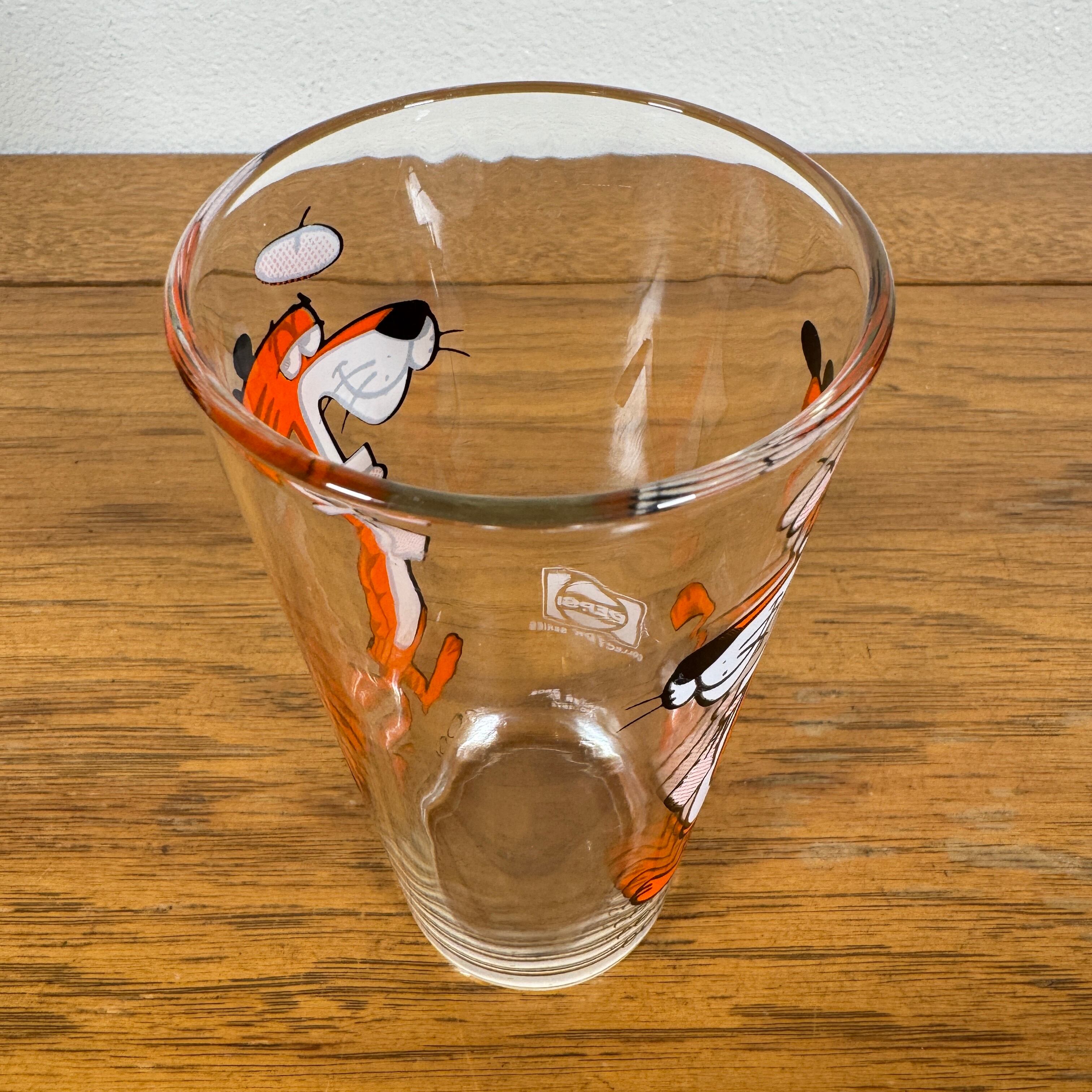 ワーナー・ブラザーズのレトロなキャラクター「Cool Cat」が描かれた、1973年製のPEPSIコレクターシリーズのグラスです。オレンジのボディにピンクのネクタイ、ちょっととぼけた表情がたまらない、当時のアメリカらしさが詰まった一品!