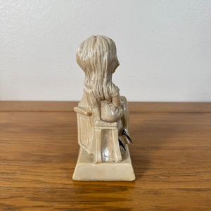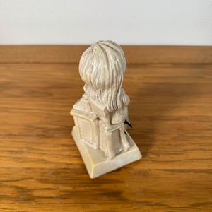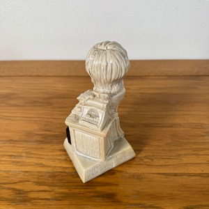 タイプライターに向かう女性が描かれたこのフィギュアは、70年代らしいデザインと、働く人の本音をユーモアで包み込んだようなメッセージが魅力です。デスクや棚に飾るだけで、ちょっとした笑いや会話のきっかけを与えてくれるアイテムです。