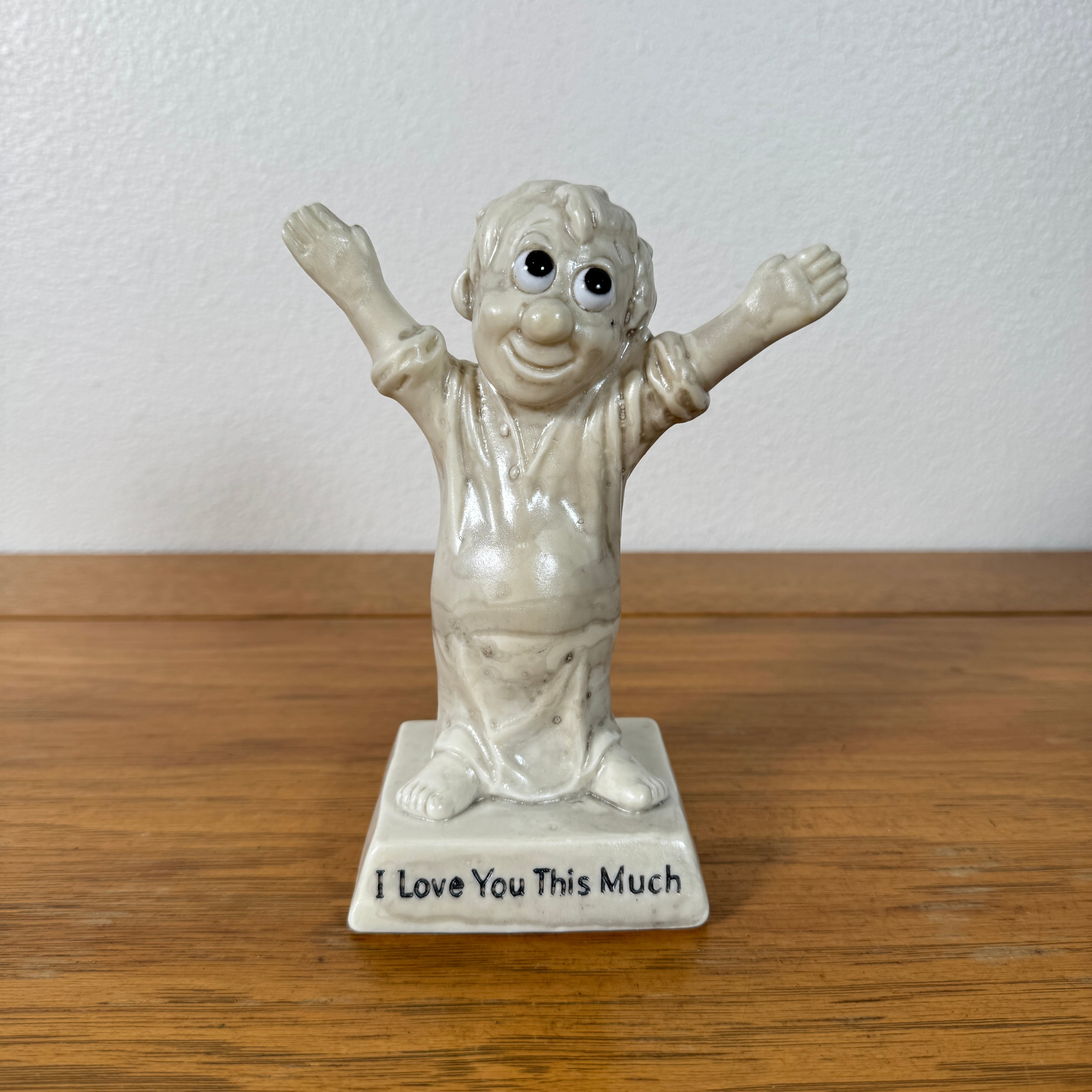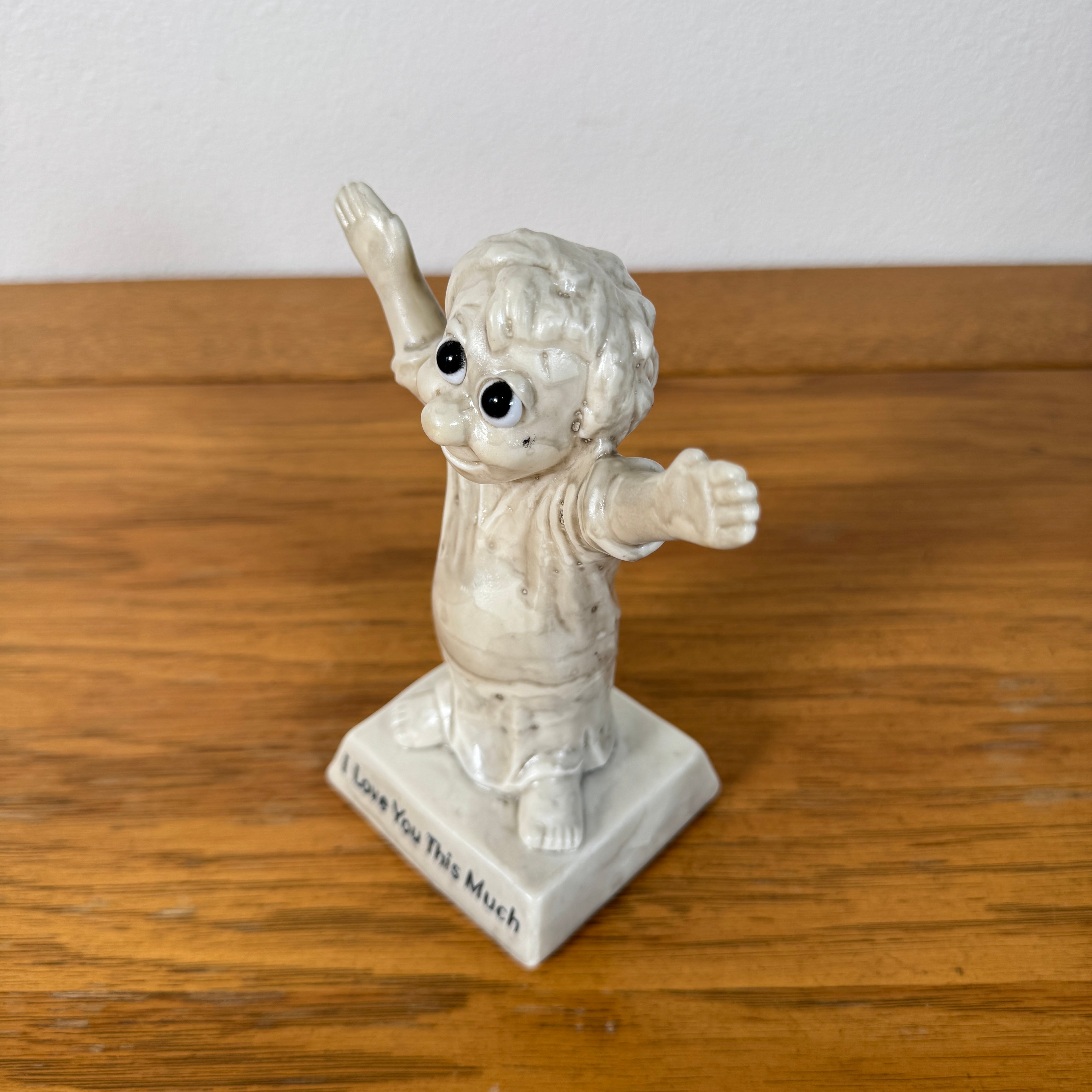 両手を大きく広げて「I Love You This Much(これだけ大きな愛をこめて)」と伝える姿は、贈り物やディスプレイにぴったり。アメリカンレトロな雰囲気と温もりを感じさせる一点物。