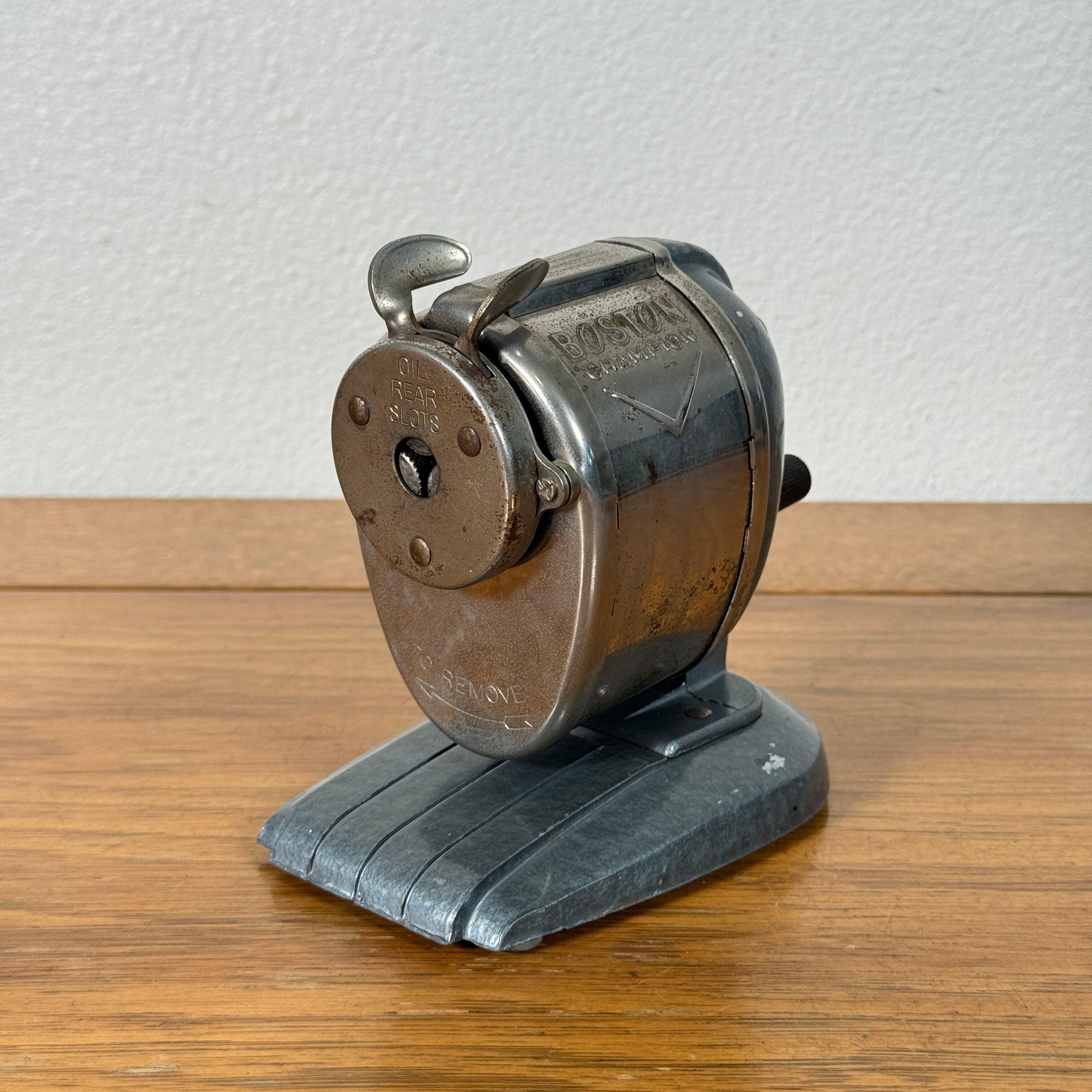 無骨なメタルボディが魅力の、Boston(ボストン)社製「Champion」手動鉛筆削りです。