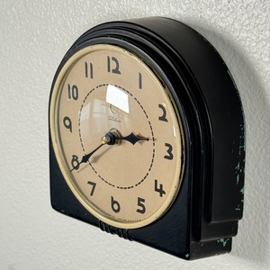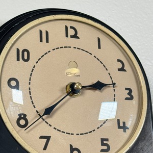 柔らかなベージュの文字盤とアール・デコ調の針デザインが目を引く、クラシックなルックスの逸品です。1930〜40年代に製造されたと推測され、当時のアメリカの家庭やオフィス、ダイナーなどで使われていた実用アイテム。