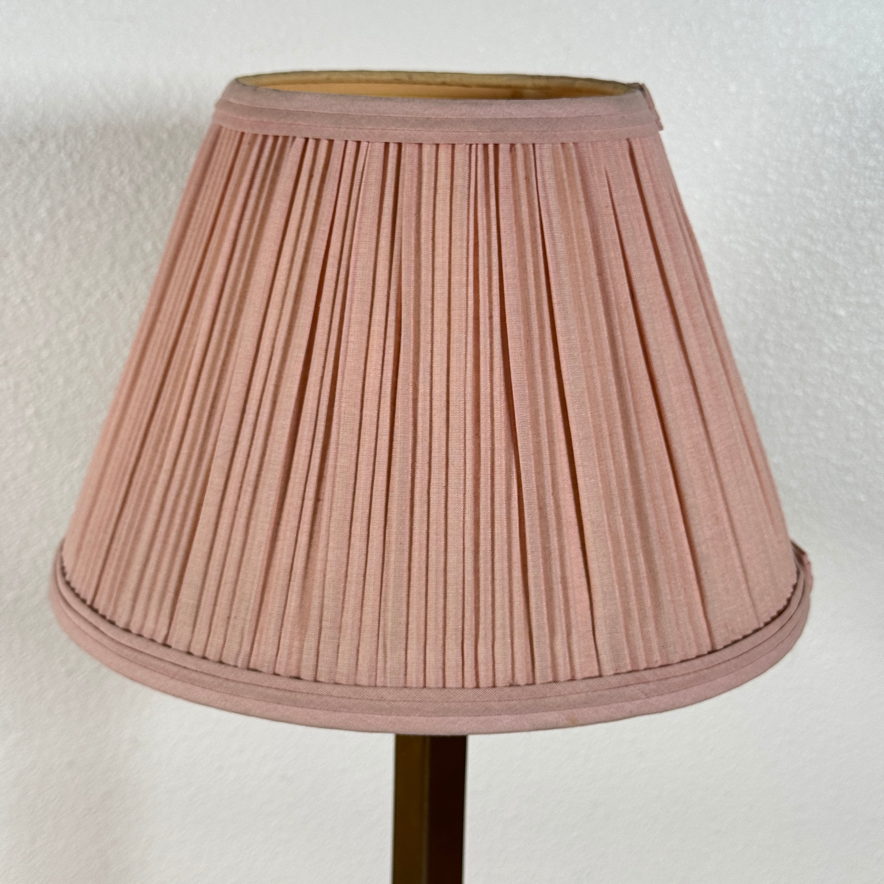 プリーツ仕様のピンクのランプシェードが柔らかな光を灯し、空間をやさしく包み込んでくれる一品。ベッドサイドやリビング、ショップディスプレイにもおすすめです。