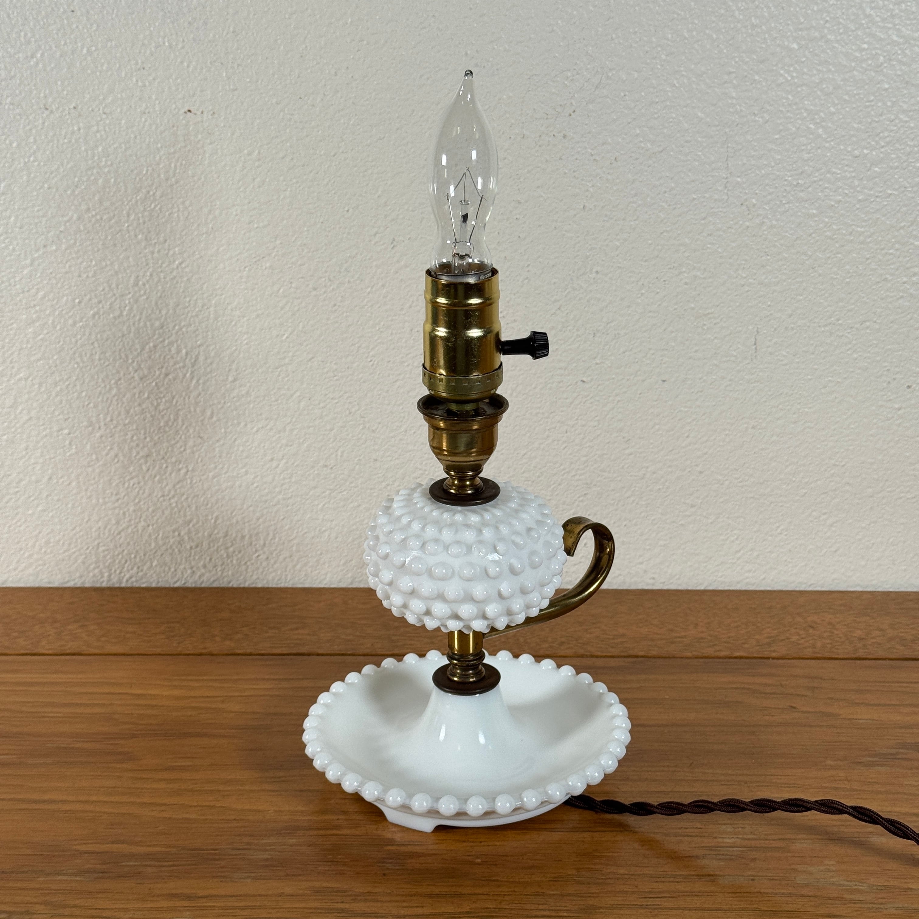 #2088 ビンテージ ホブネイル テーブルランプ ミルクガラス製