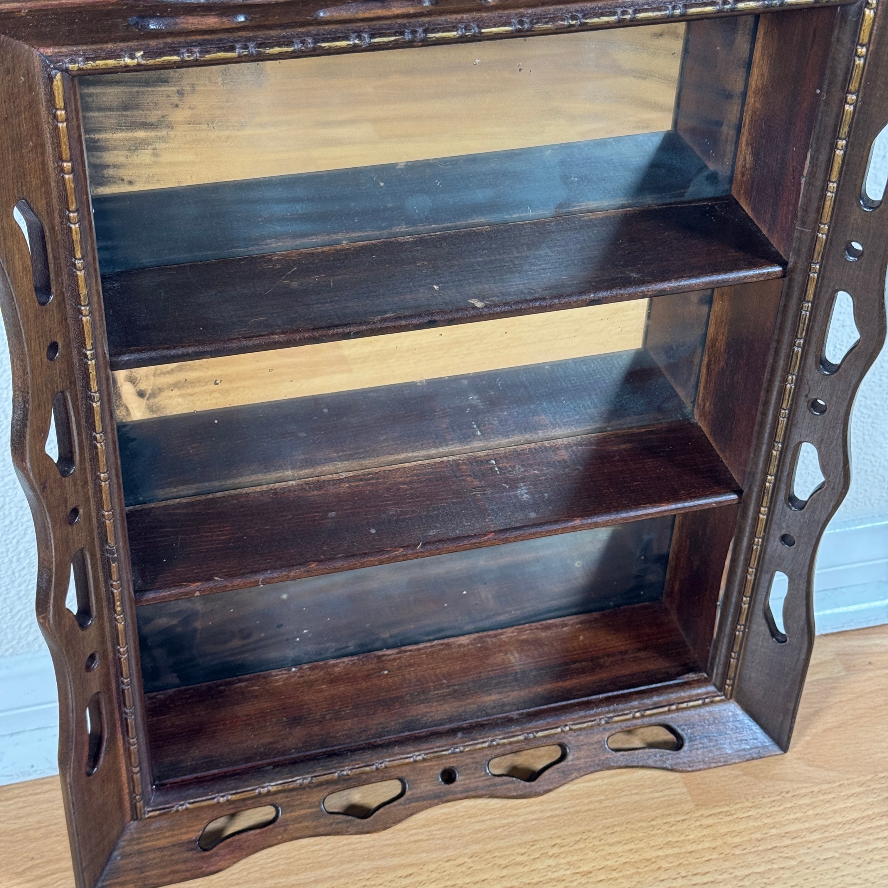 繊細なカットワークのフレームと深みのあるブラウンカラーが印象的で、コレクションや小物をディスプレイするのに最適です。