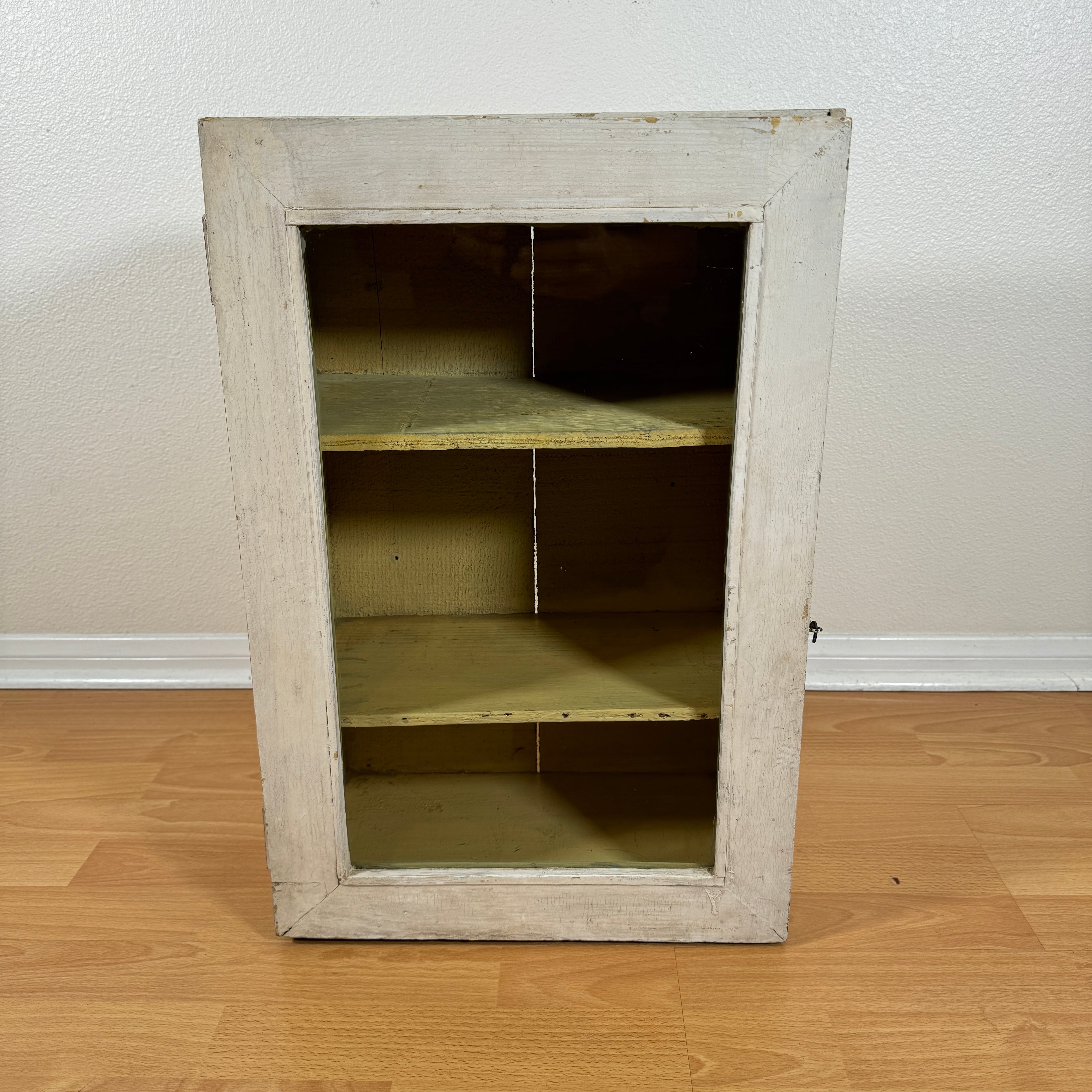ガラス扉とシャビーなウッドの組み合わせがクラシックで温かみのある存在感を演出してくれます。、ご自宅やショップのディスプレイケースとしていかがでしょうか。