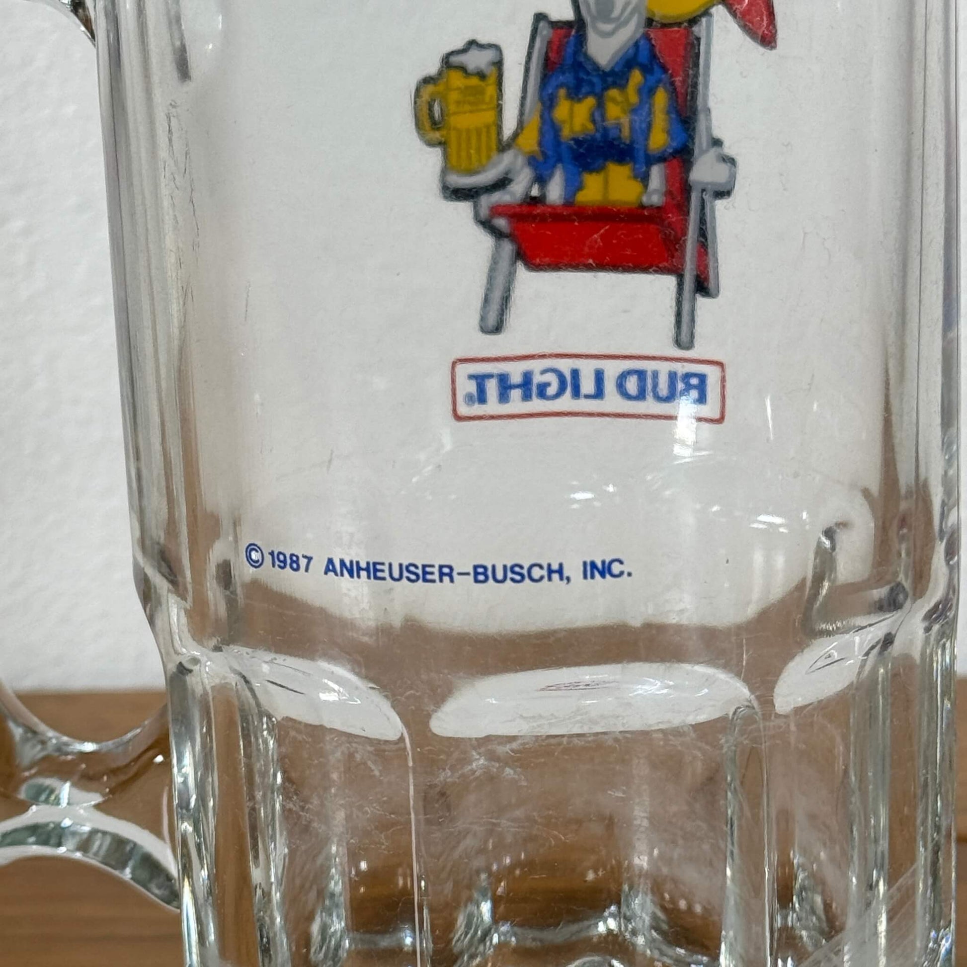 こちらのアイテムは、アメリカでもファンが多い、バドライトのマスコットキャラクター「スパッズ マッケンジー」が描かれた1987年のビアジョッキです。