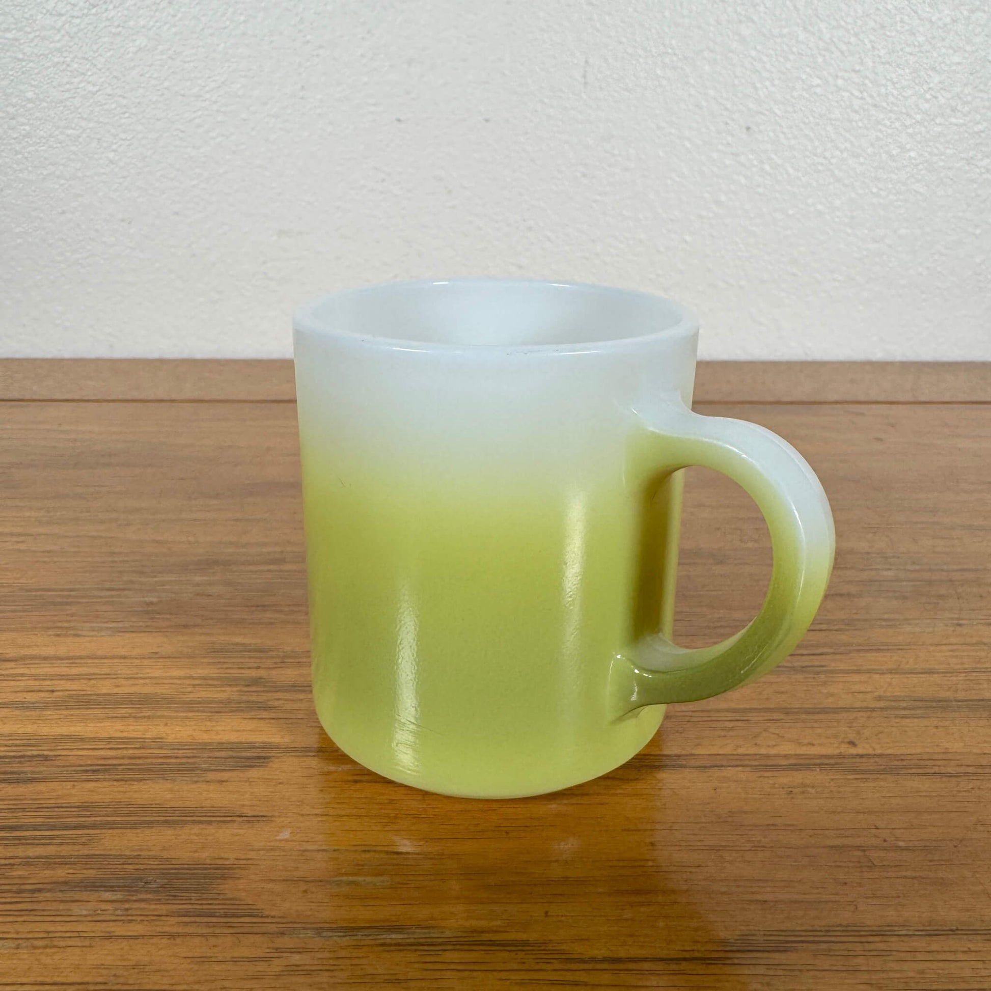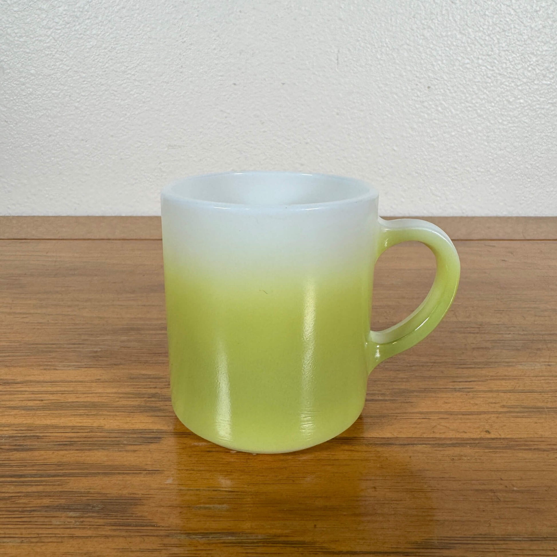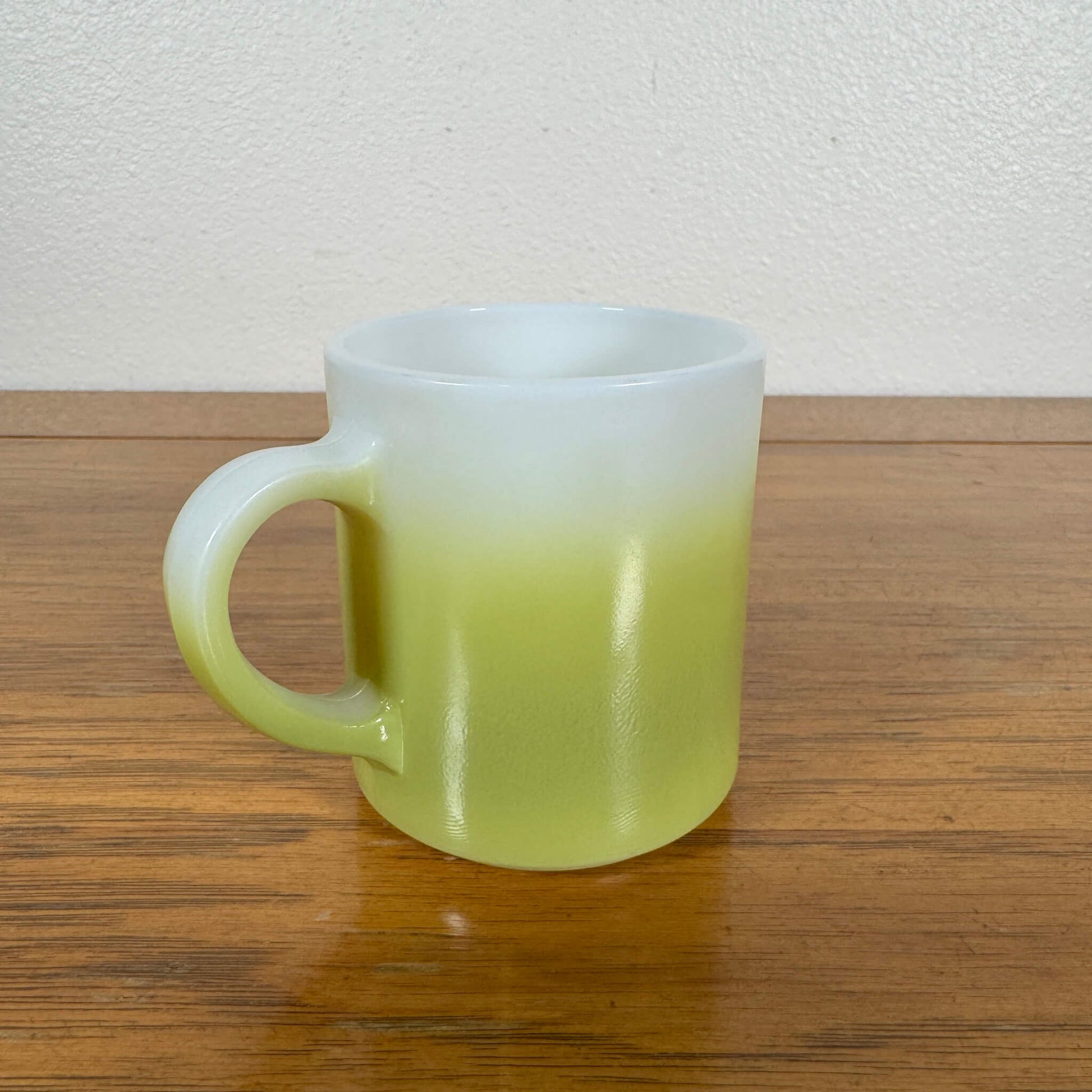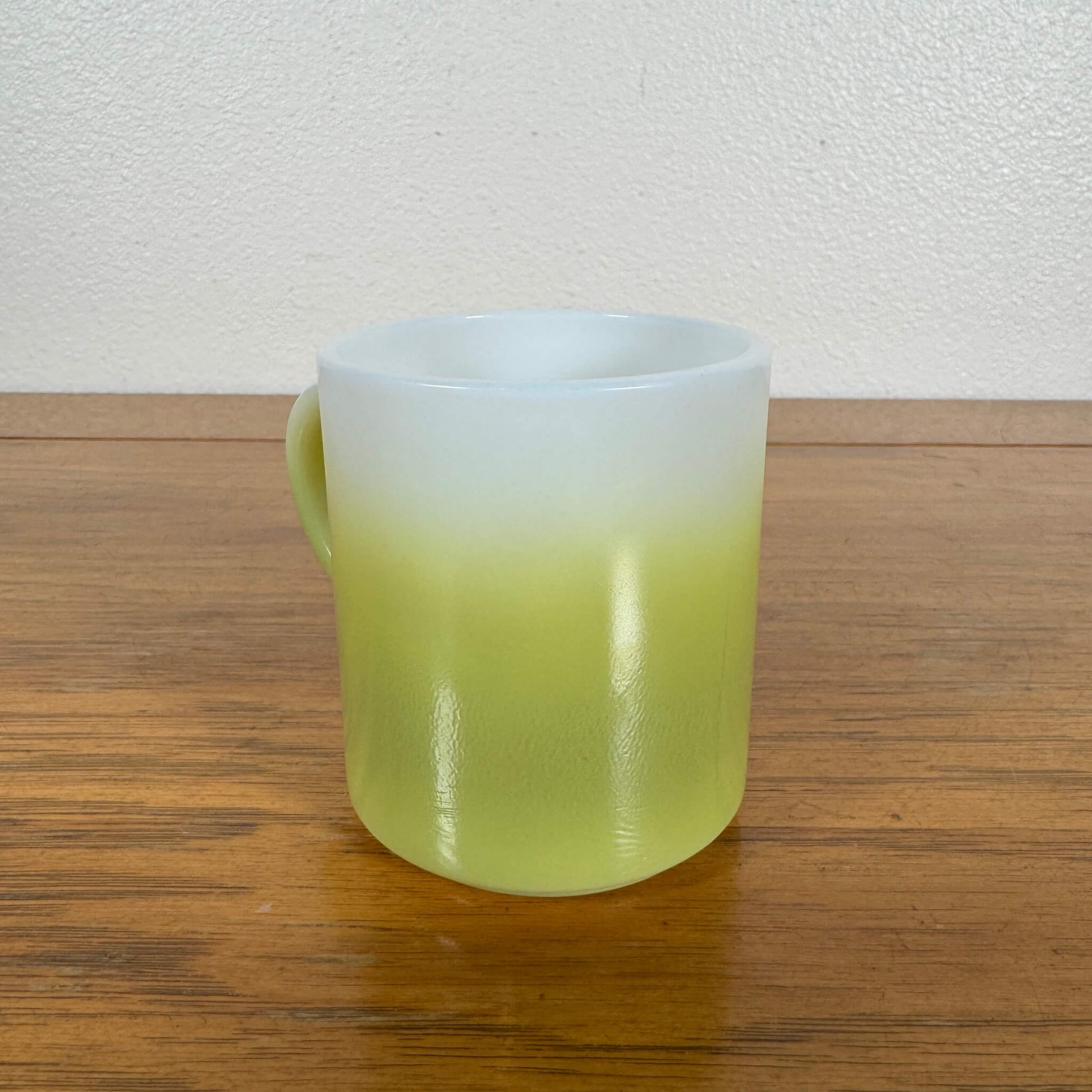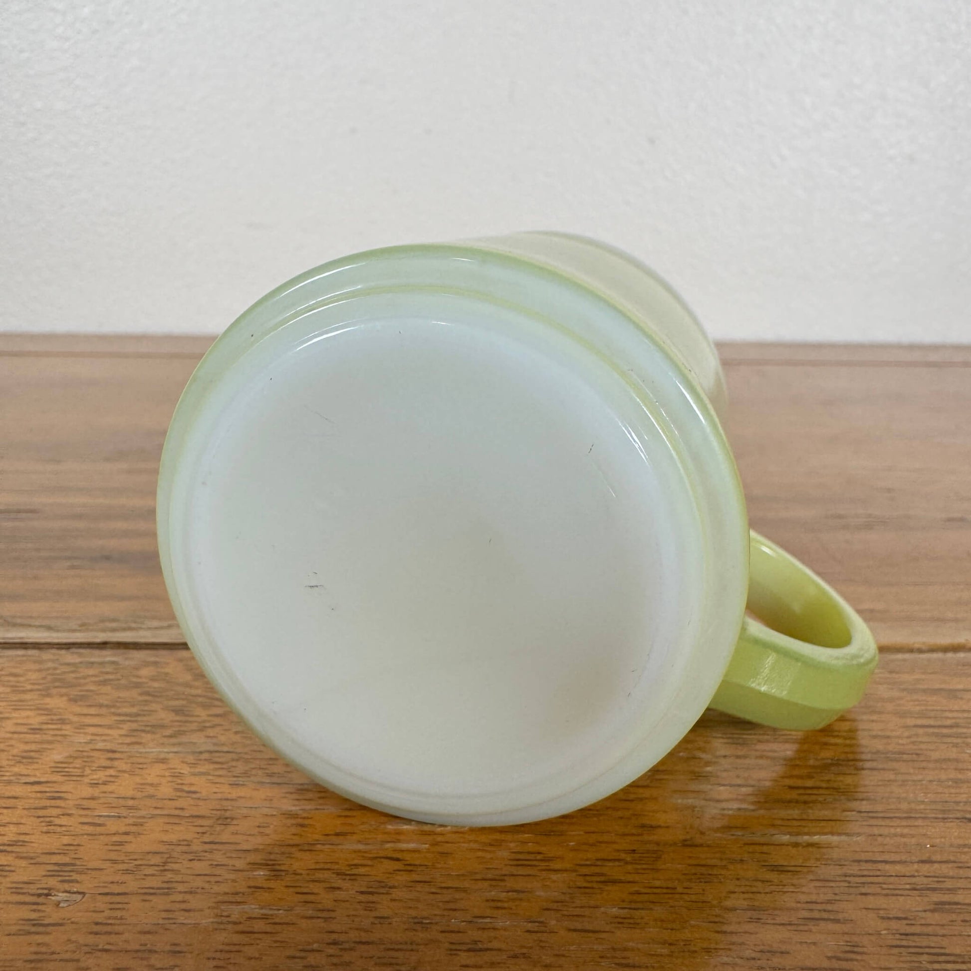 アメリカで1960〜70年代に製造された、ミルクガラス製のグリーンフェードマグ です。