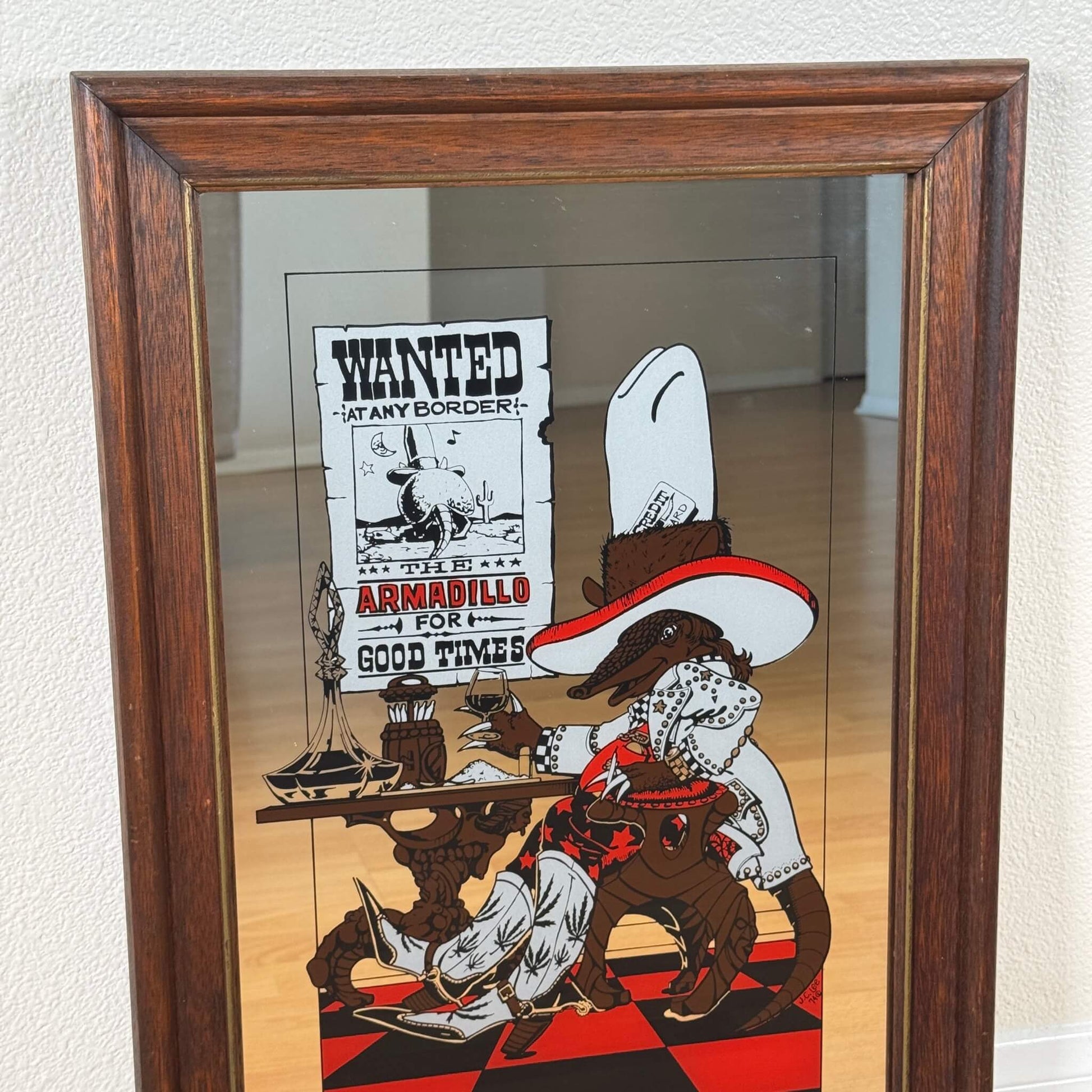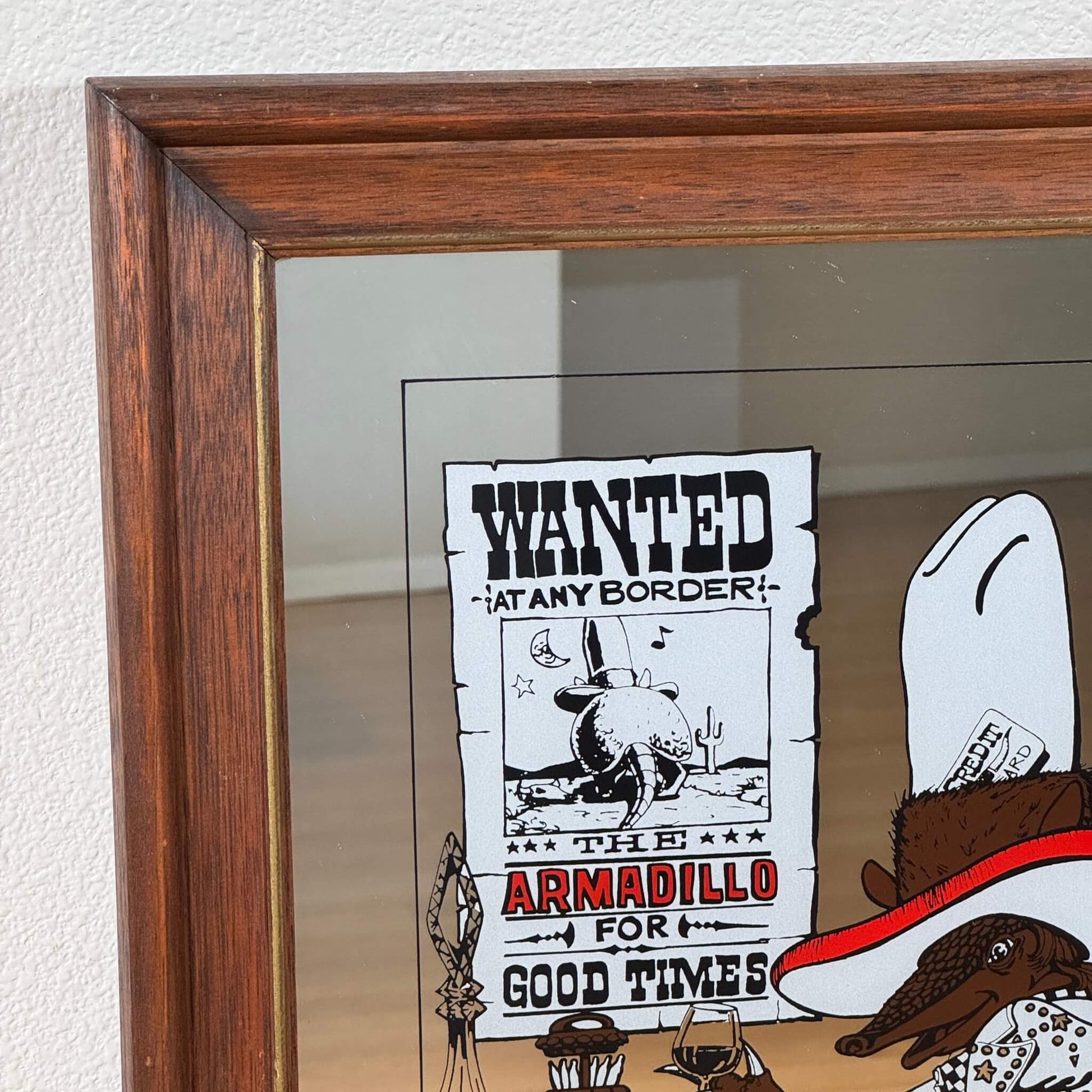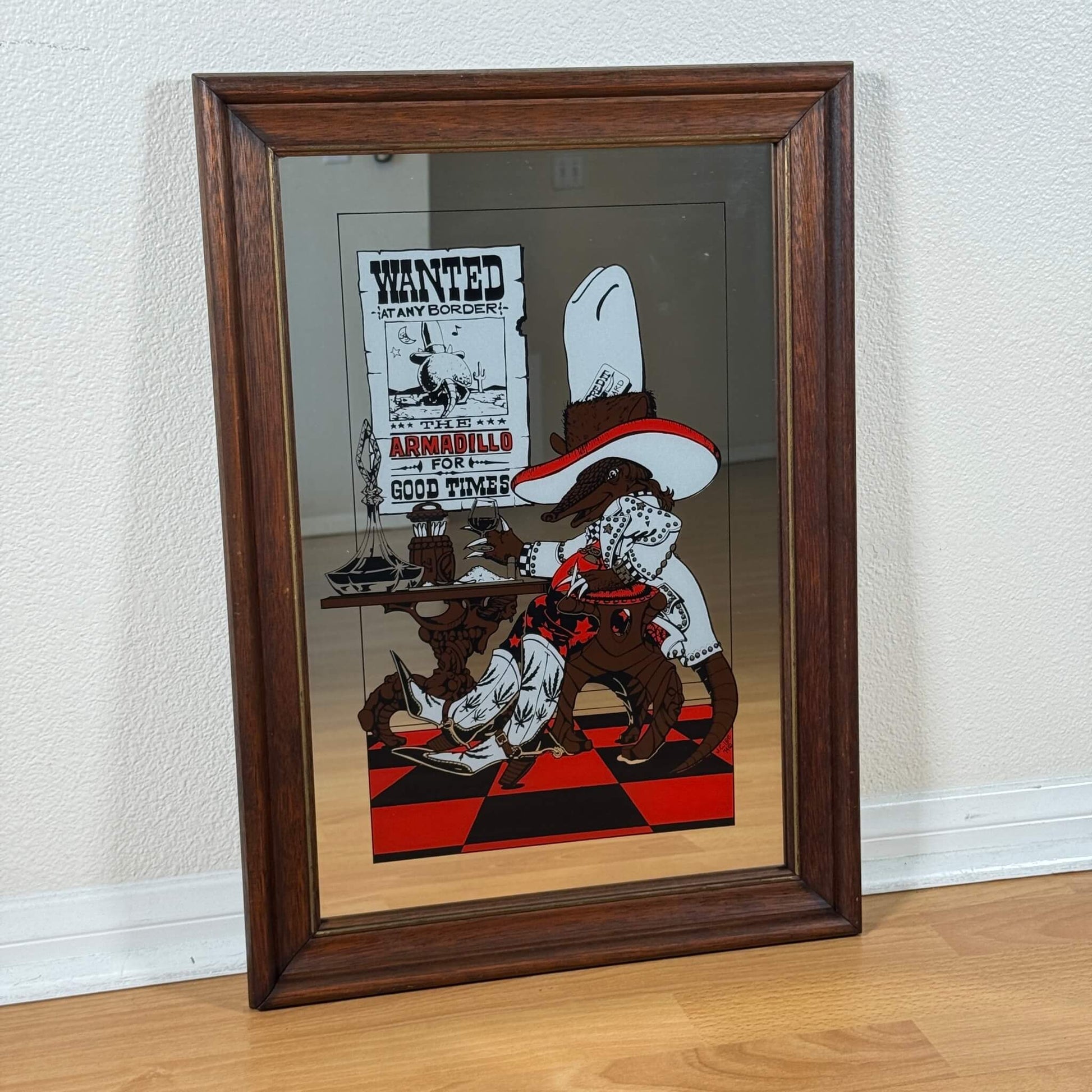 #1942【1974年製】ビンテージ ウエスタン アルマジロ パブミラー / ウォールデコ アメリカ