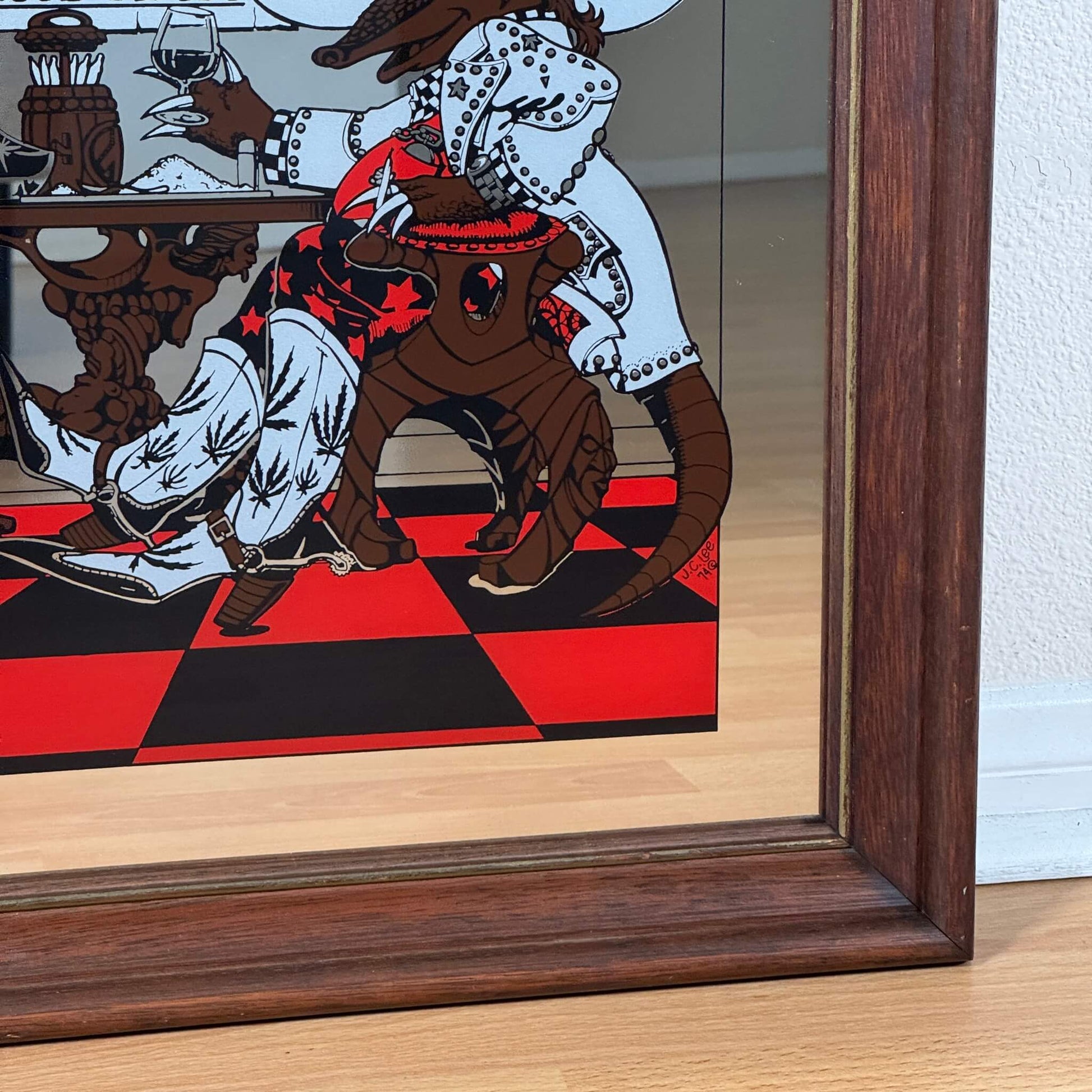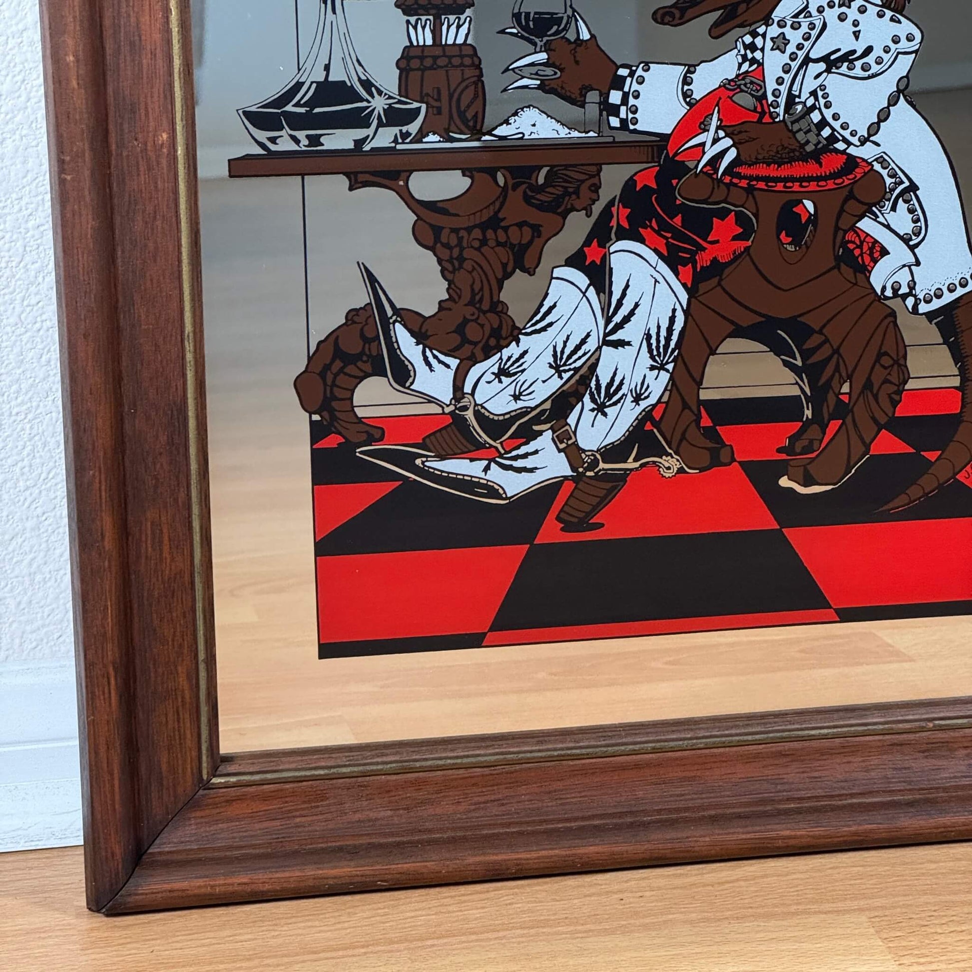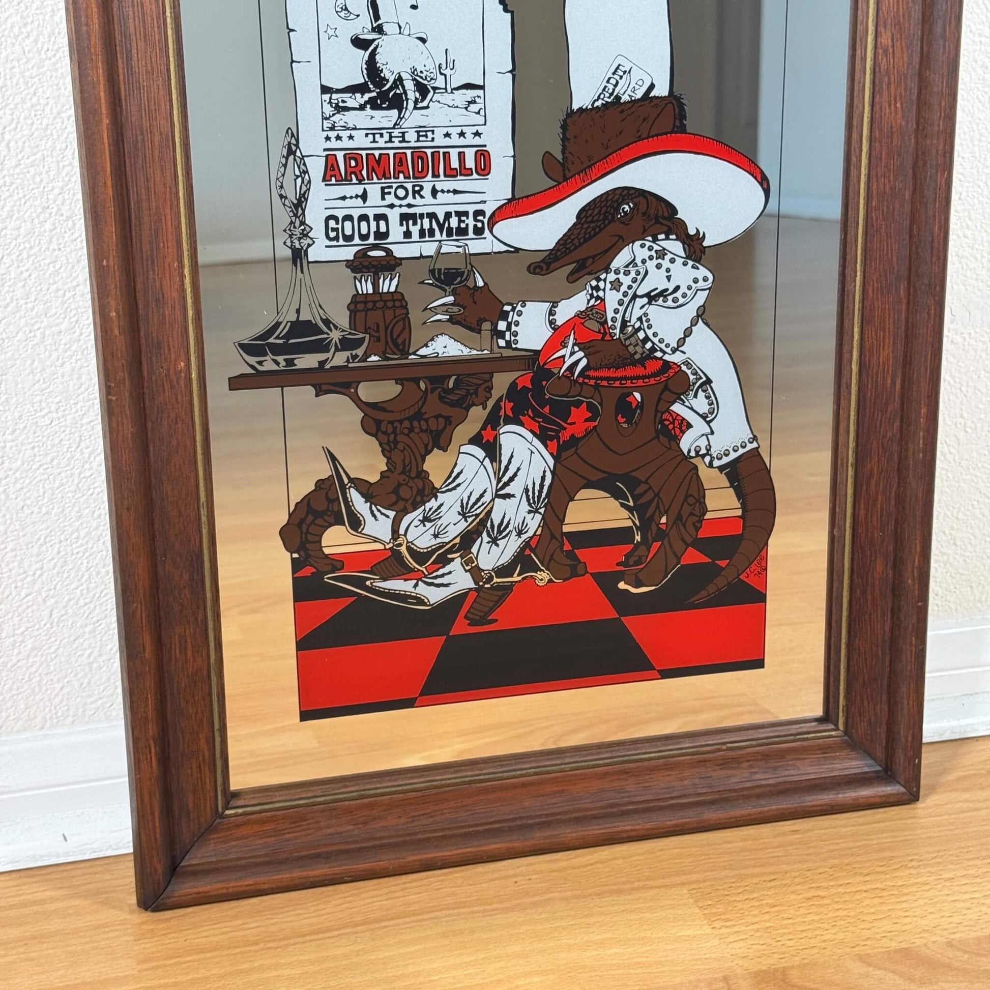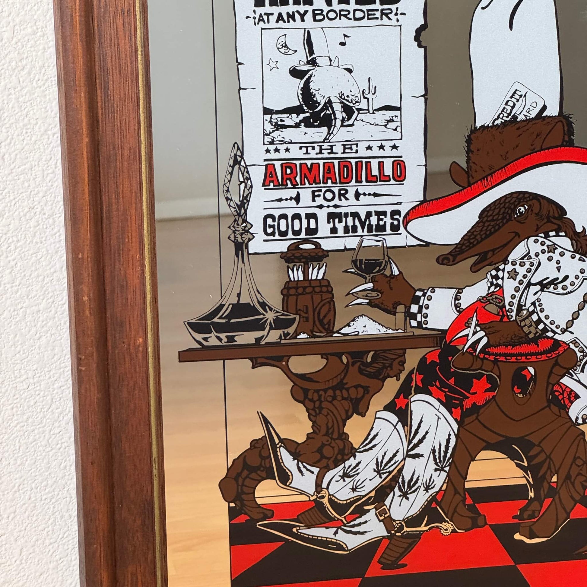 #1942【1974年製】ビンテージ ウエスタン アルマジロ パブミラー / ウォールデコ アメリカ