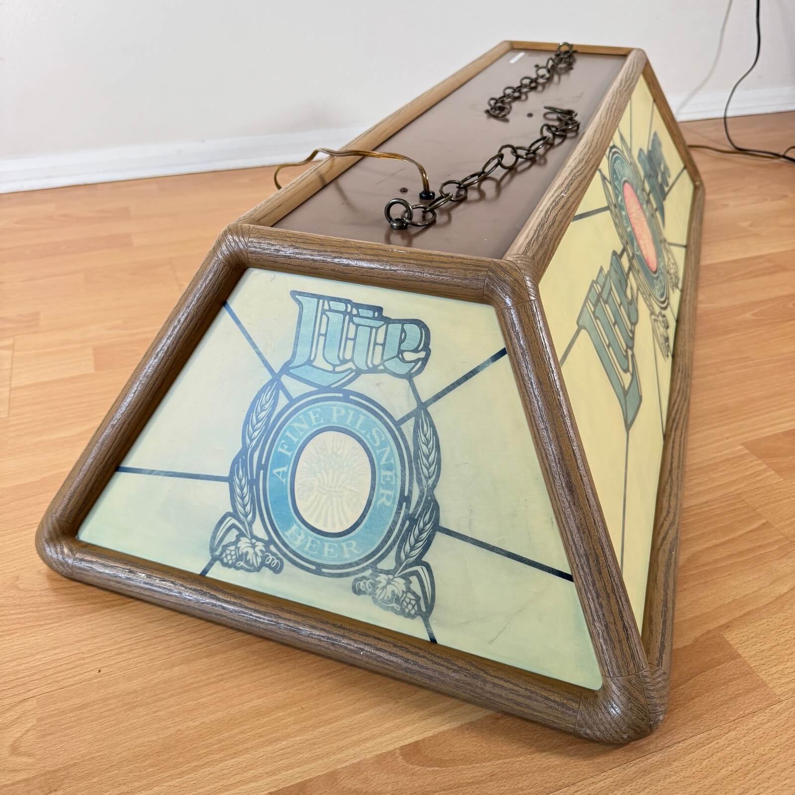 アメリカのビールブランド「Miller Lite(ミラーライト)」の1986年製プールバーランプです。バーなどで実際に使われていた、存在感抜群の照明です。