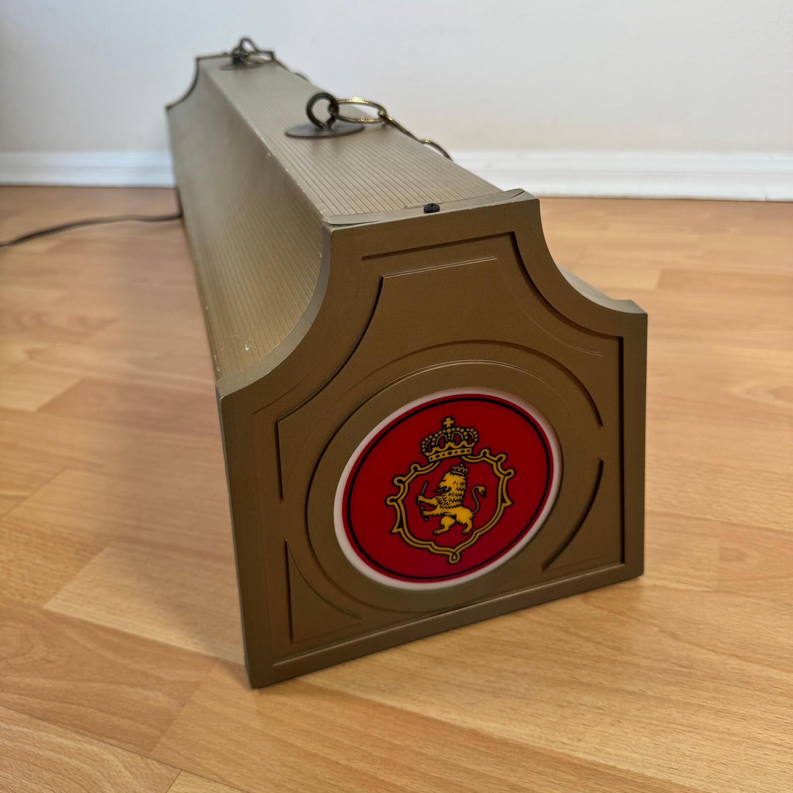 ガレージ、ショップ什器、ホームバーのアクセントにおすすめ。チェーン付きなので、設置もしやすく、お好きな場所に吊るして楽しめます。