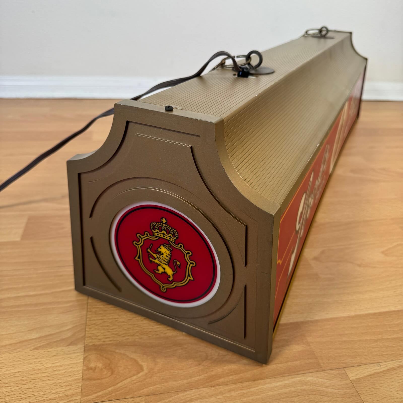 鮮やかなレッドカラーとクラシカルなロゴデザインが、空間に一気にアメリカンビンテージの雰囲気をプラスしてくれる存在感抜群のアイテムです。点灯すると、ロゴが浮かび上がり、さらに雰囲気を盛り上げてくれます。