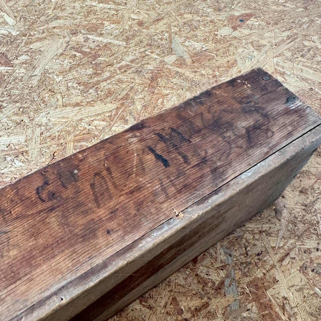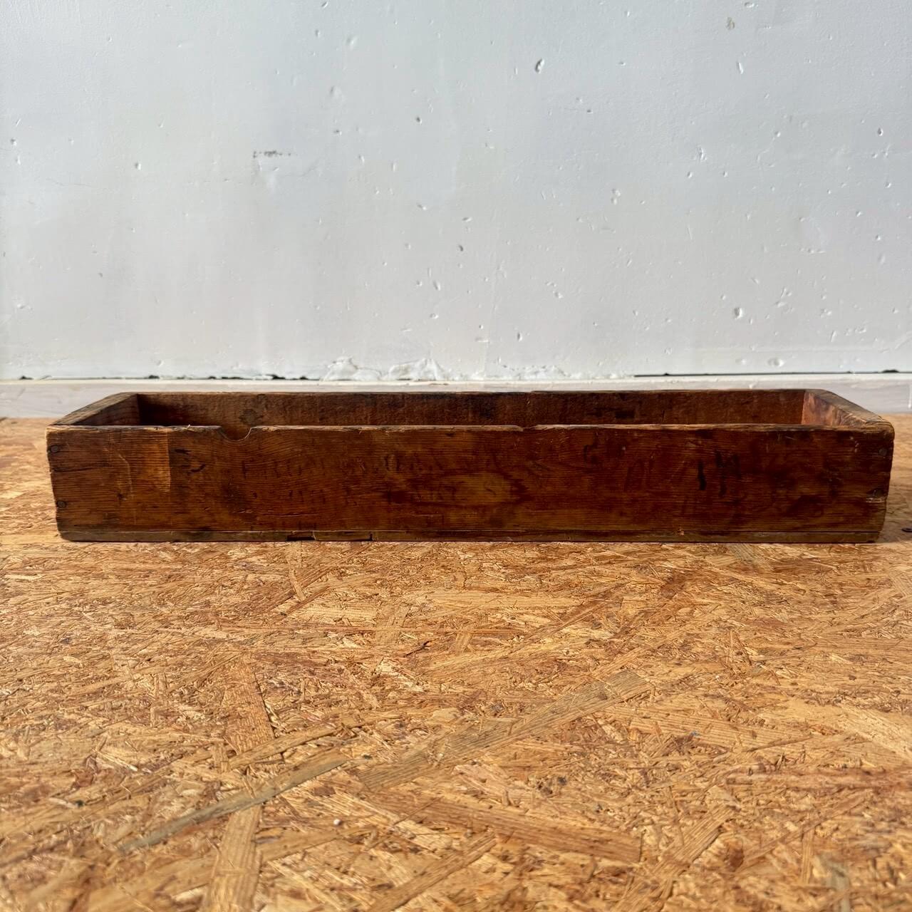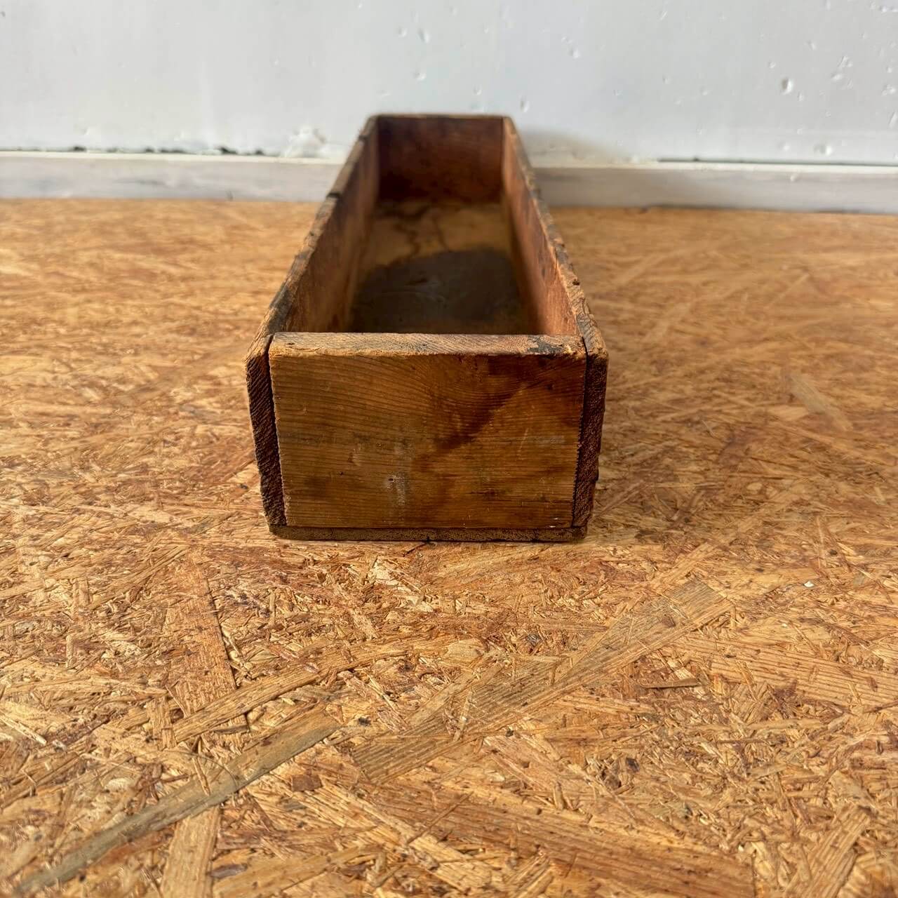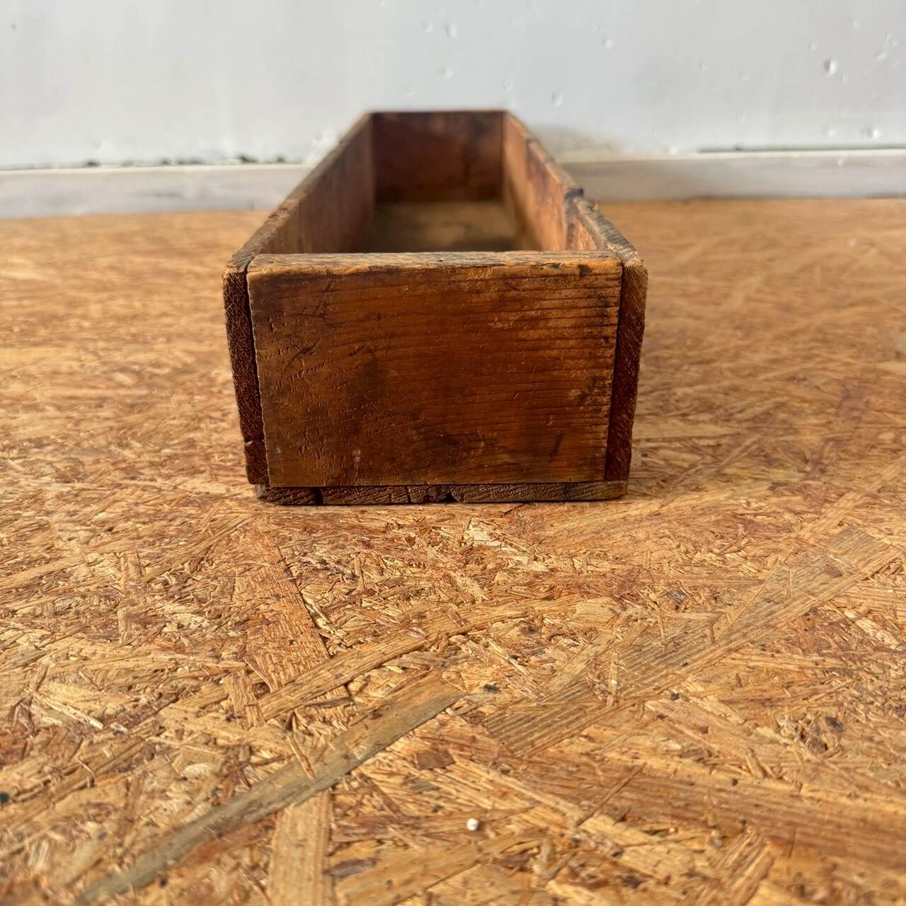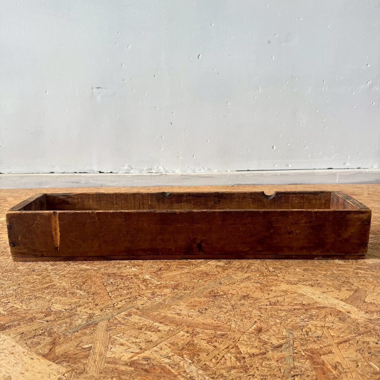 細長いシンプルな形状で、小物やツール、パーツ類の収納に適した実用的なアイテム。無駄のないデザインながら、しっかりとした作りで、当時のワーク感を感じさせてくれます。