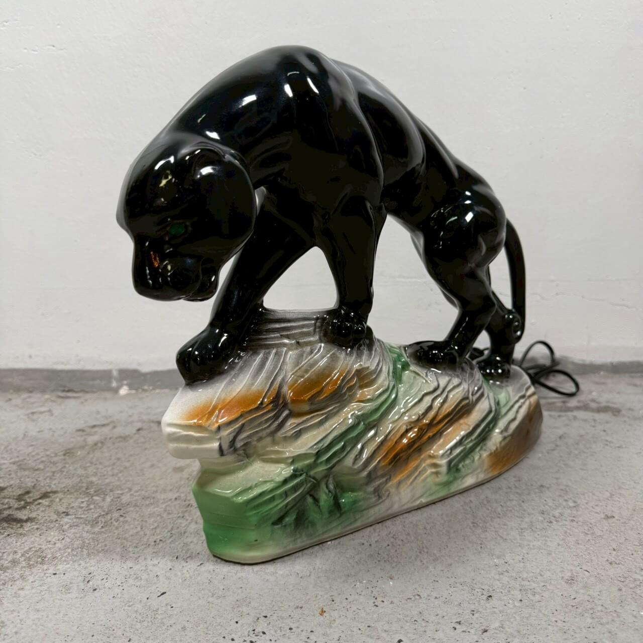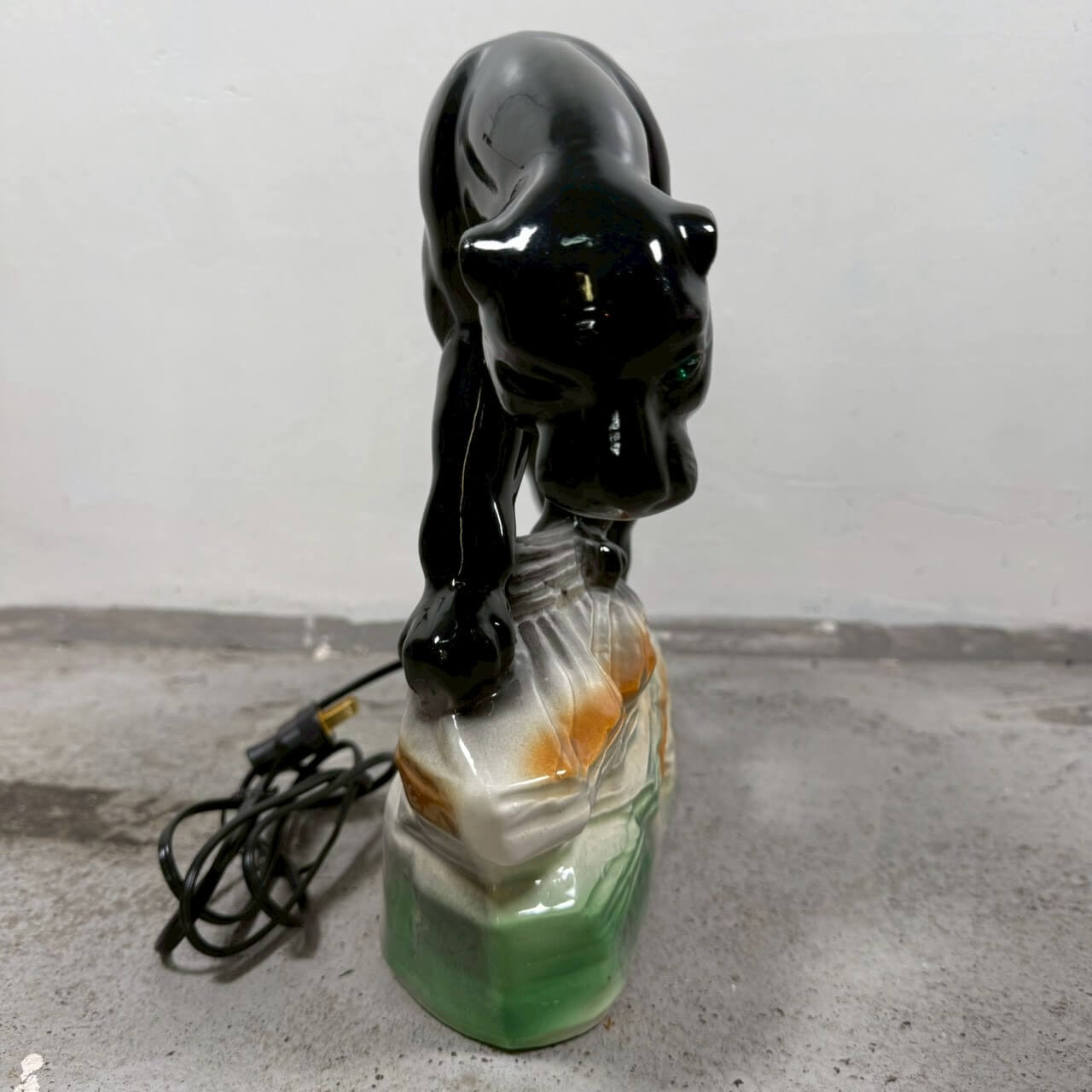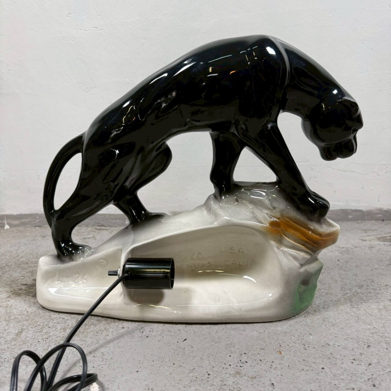 #2270【1950-60年代】ビンテージ ブラックパンサー オブジェ セラミック ライト付き ミッドセンチュリー アメリカ