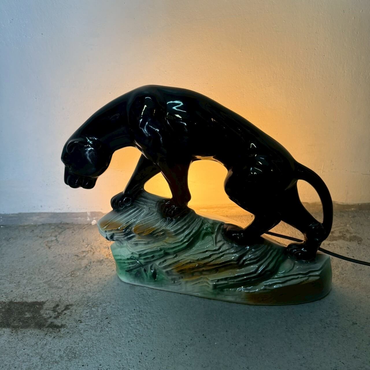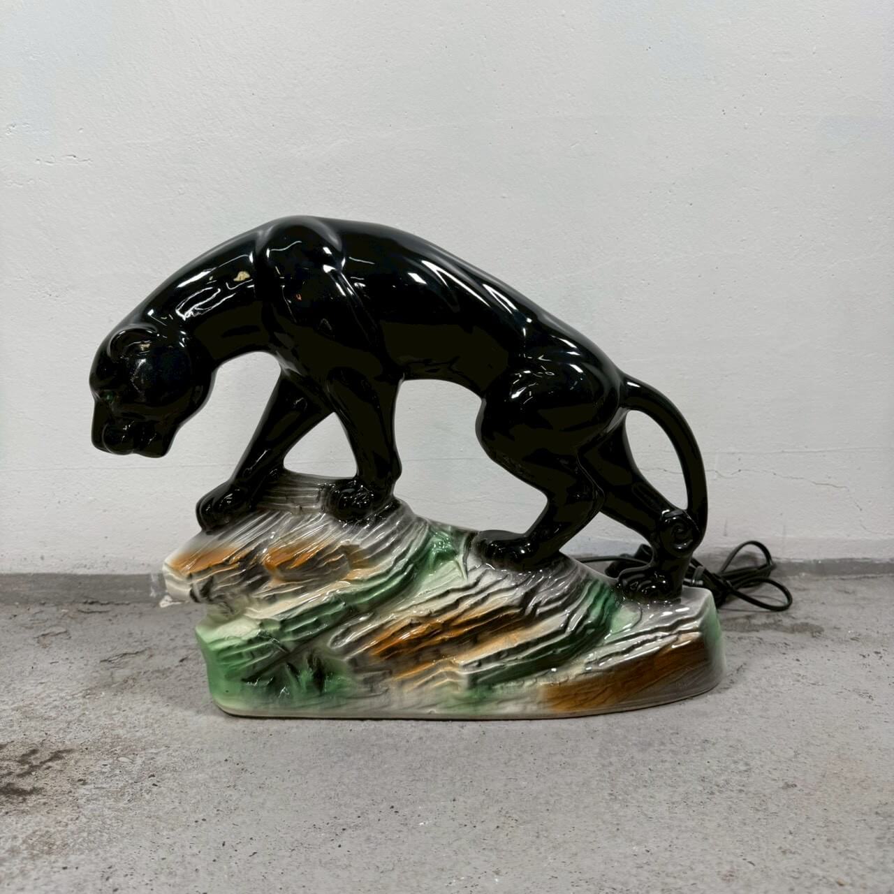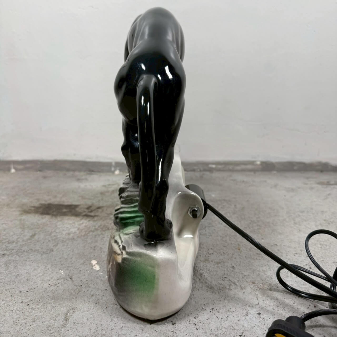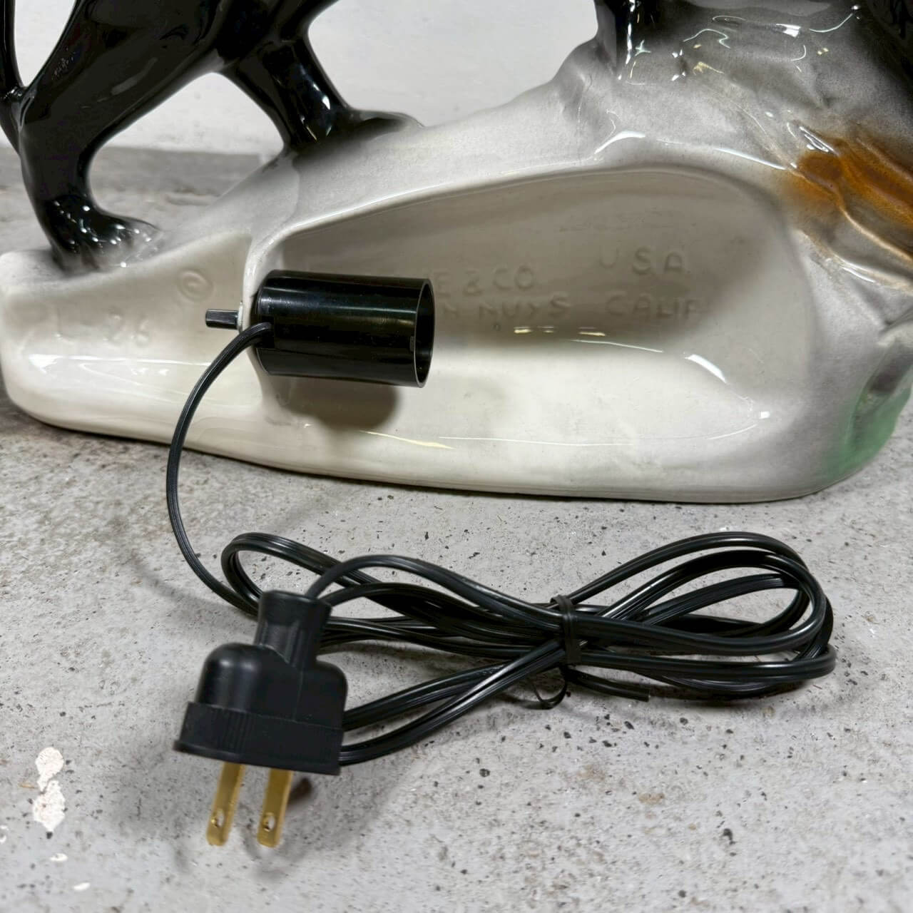 #2270【1950-60年代】ビンテージ ブラックパンサー オブジェ セラミック ライト付き ミッドセンチュリー アメリカ