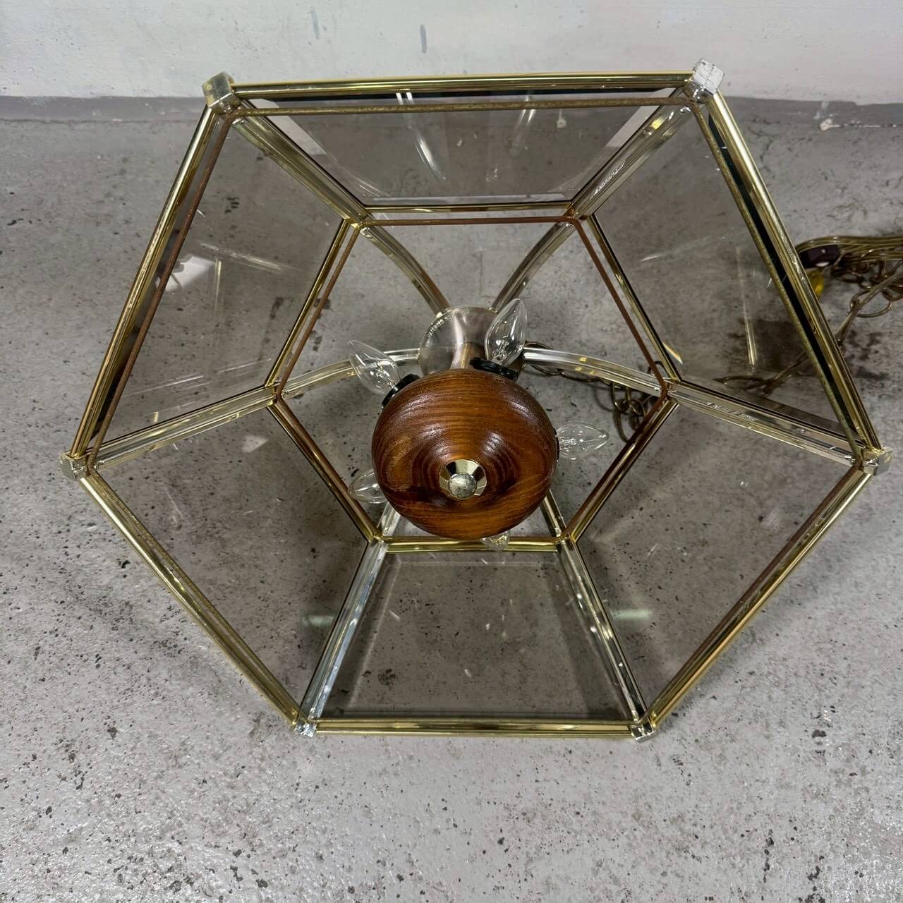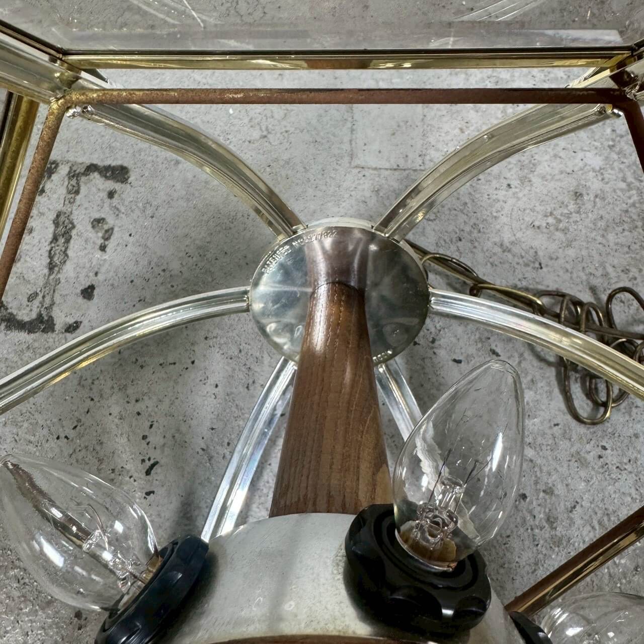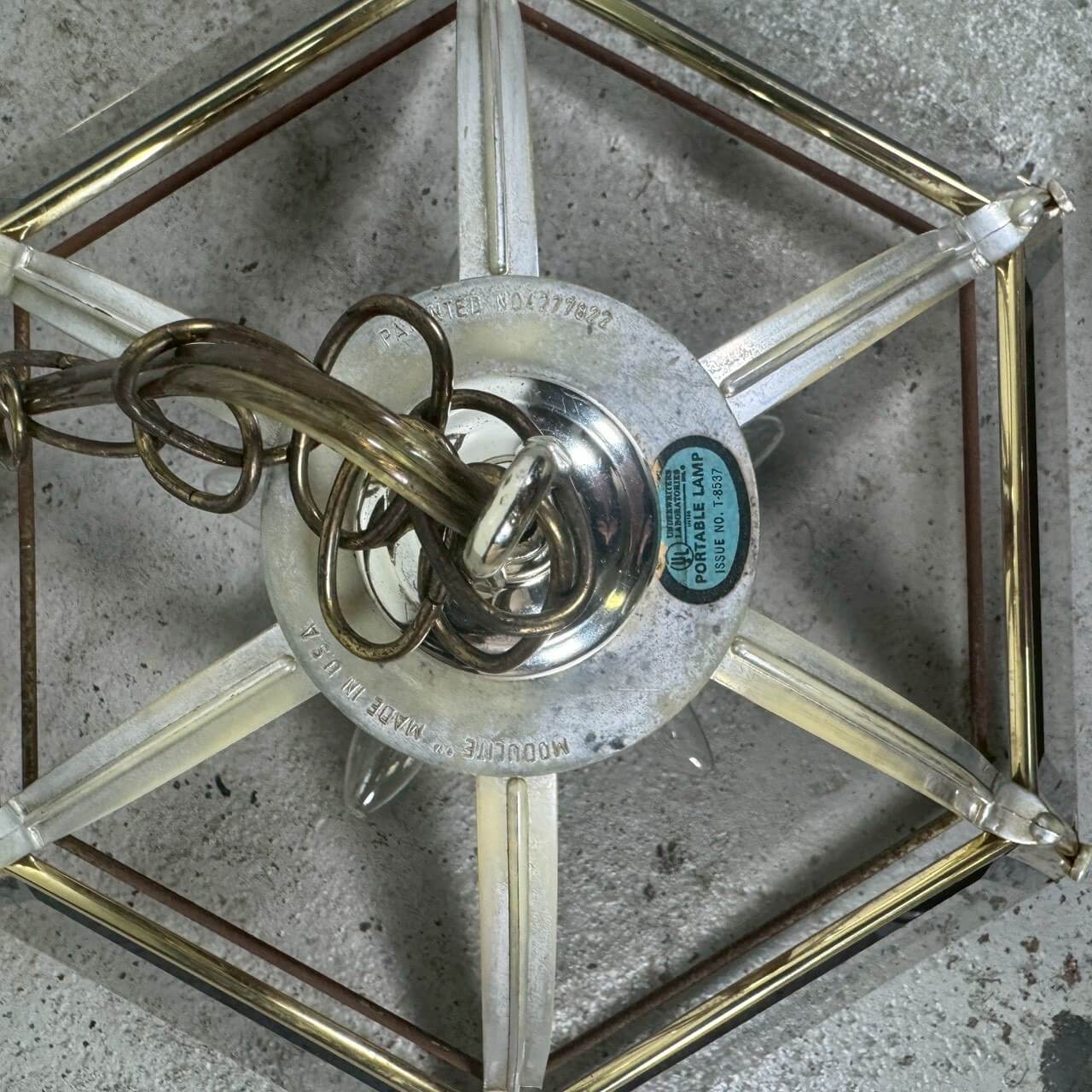 立体的なガラスパネルとゴールドフレームの組み合わせが美しいビンテージペンダントランプです。多面体のシェード構造により、点灯時には柔らかな陰影と独特の空間演出を生み出します。ミッドセンチュリーやアメリカンビンテージの空気感をインテリアに取り入れたい方におすすめの一点。