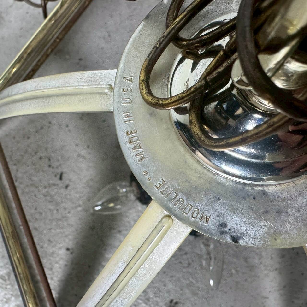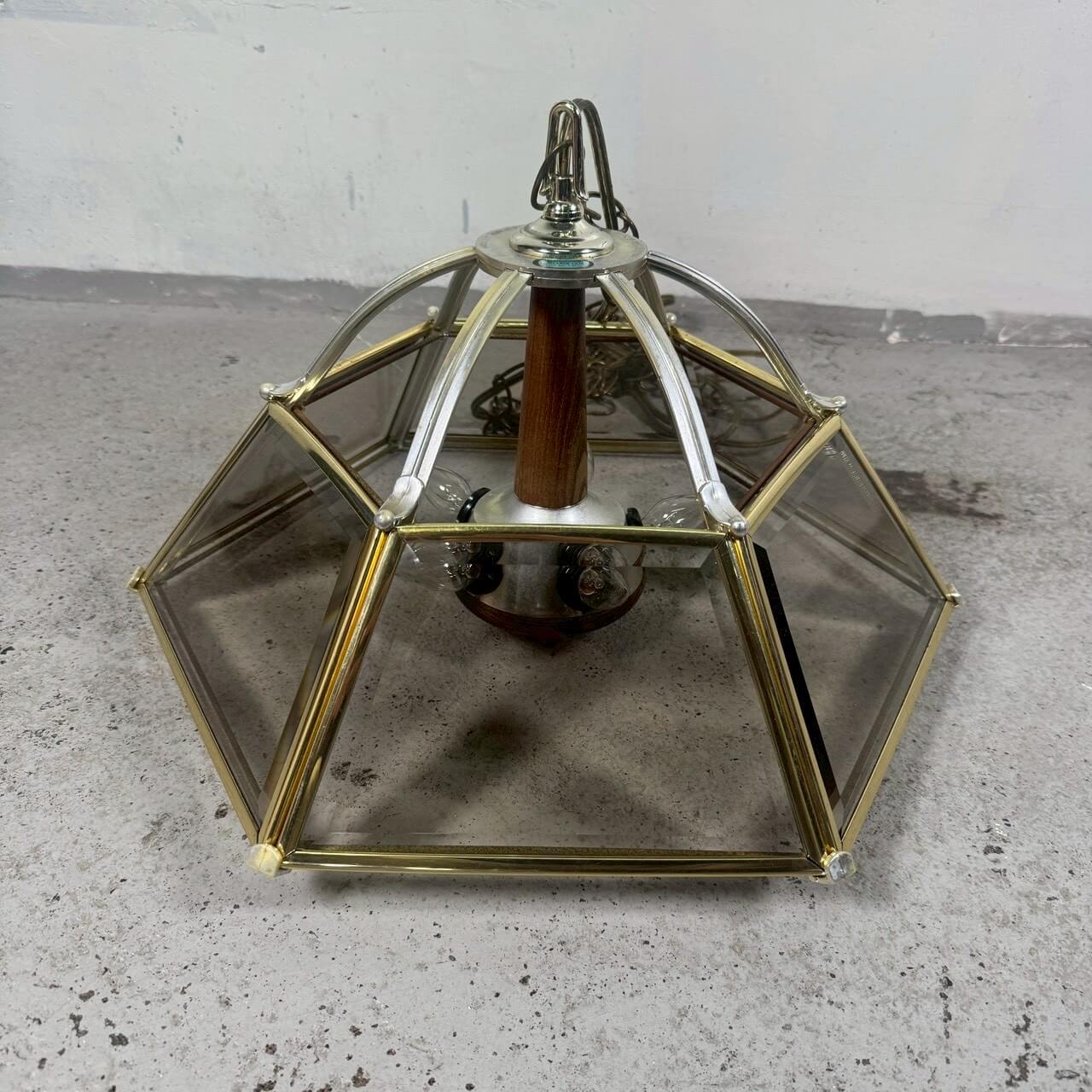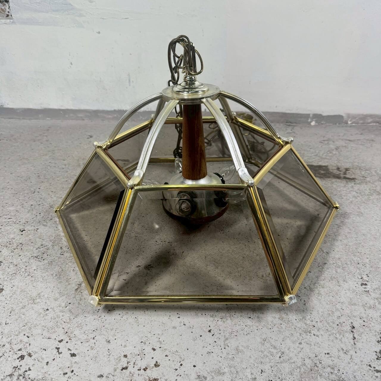 立体的なガラスパネルとゴールドフレームの組み合わせが美しいビンテージペンダントランプです。多面体のシェード構造により、点灯時には柔らかな陰影と独特の空間演出を生み出します。ミッドセンチュリーやアメリカンビンテージの空気感をインテリアに取り入れたい方におすすめの一点。