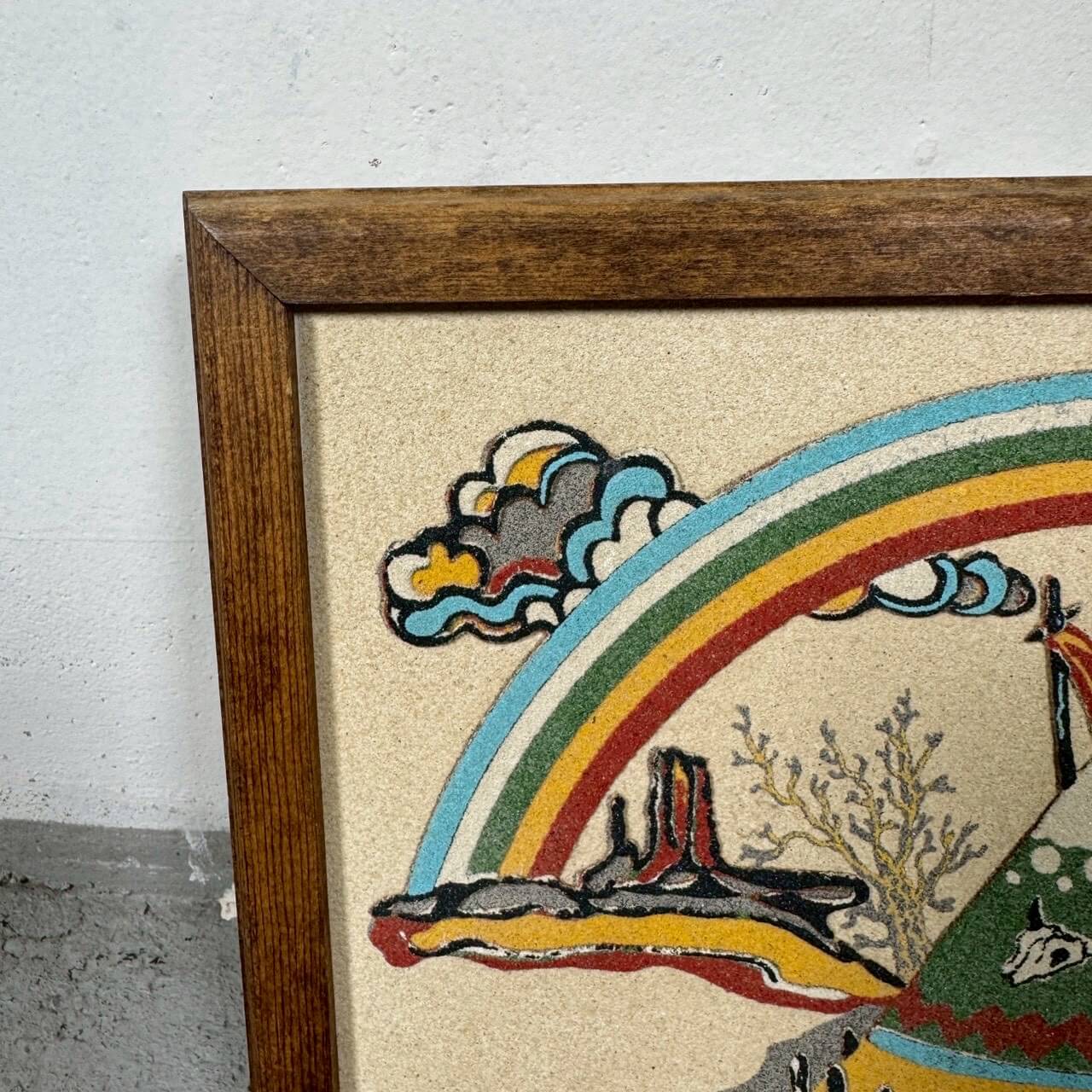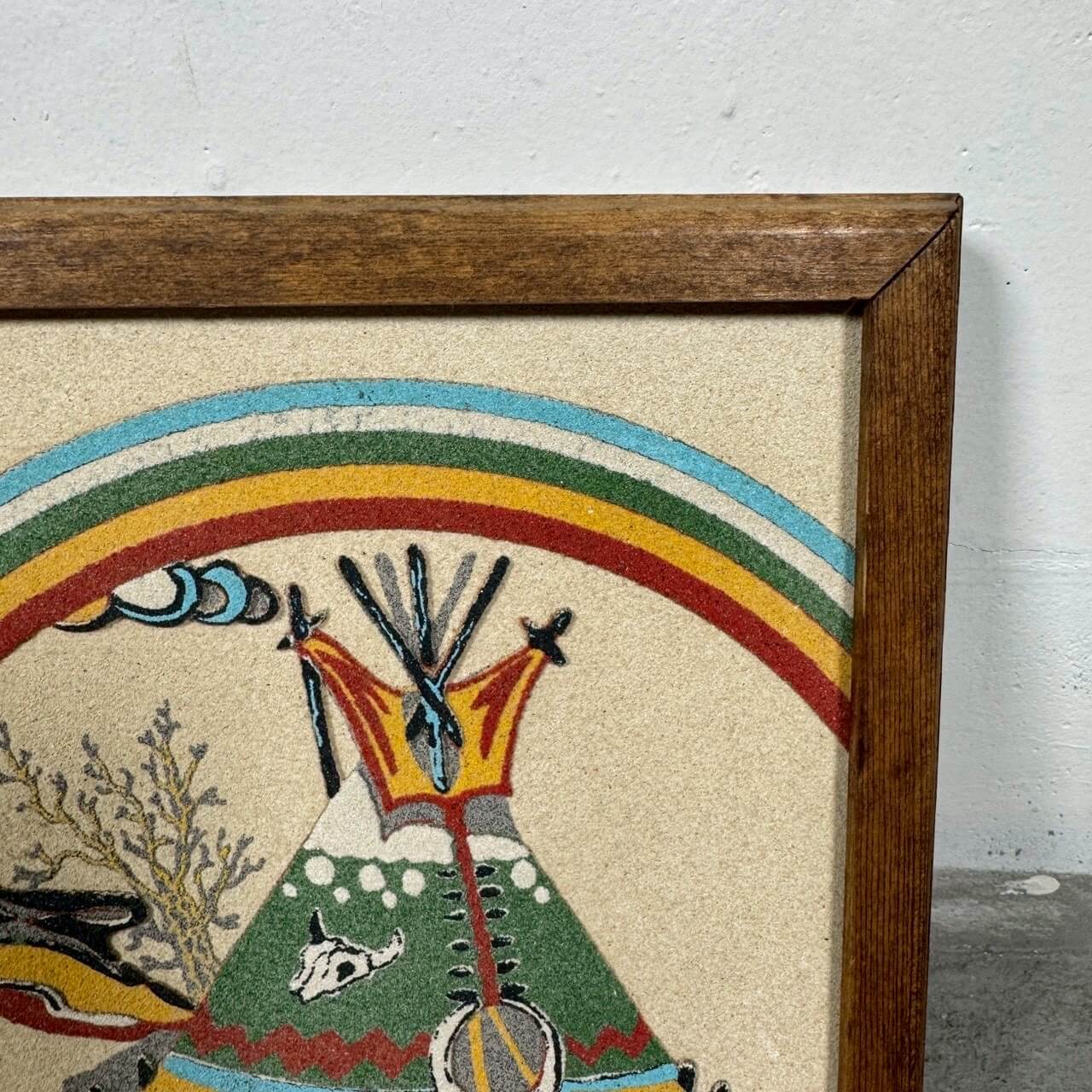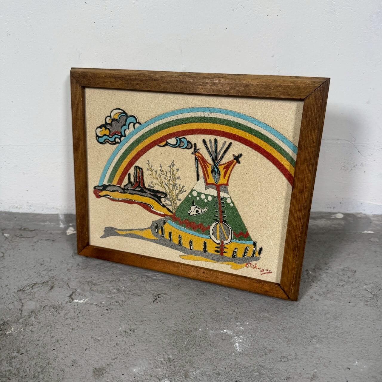 ネイティブアメリカンのティピーや荒野の風景、レインボーをモチーフにしたビンテージのサンドアート作品です。